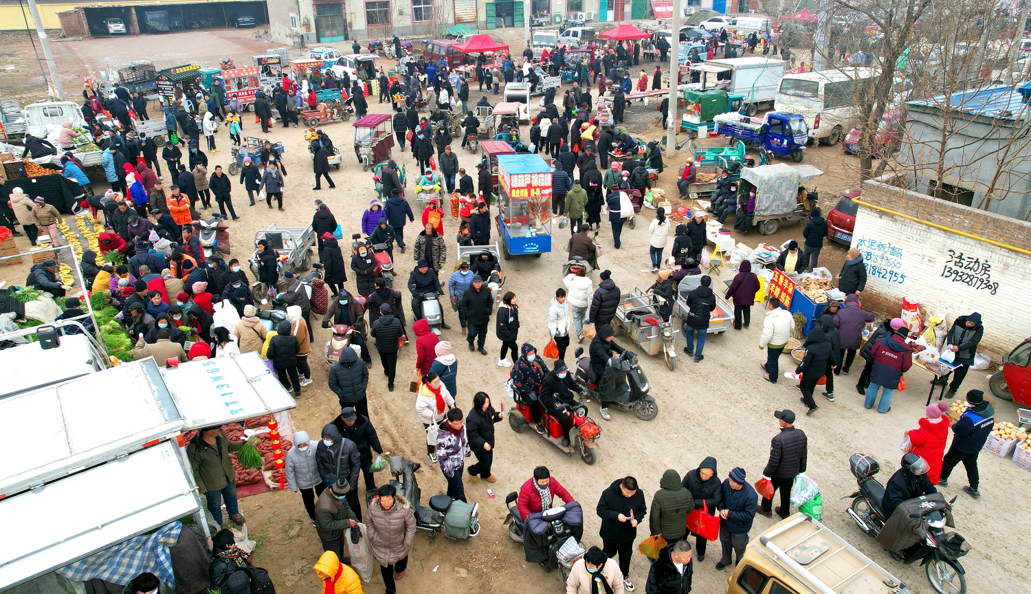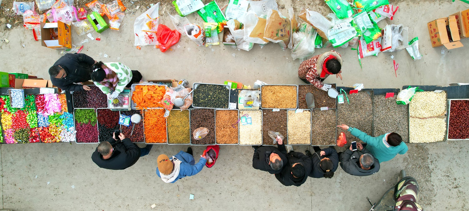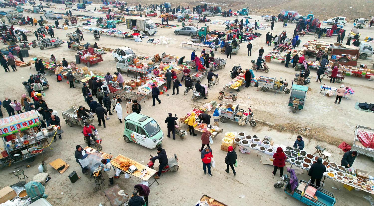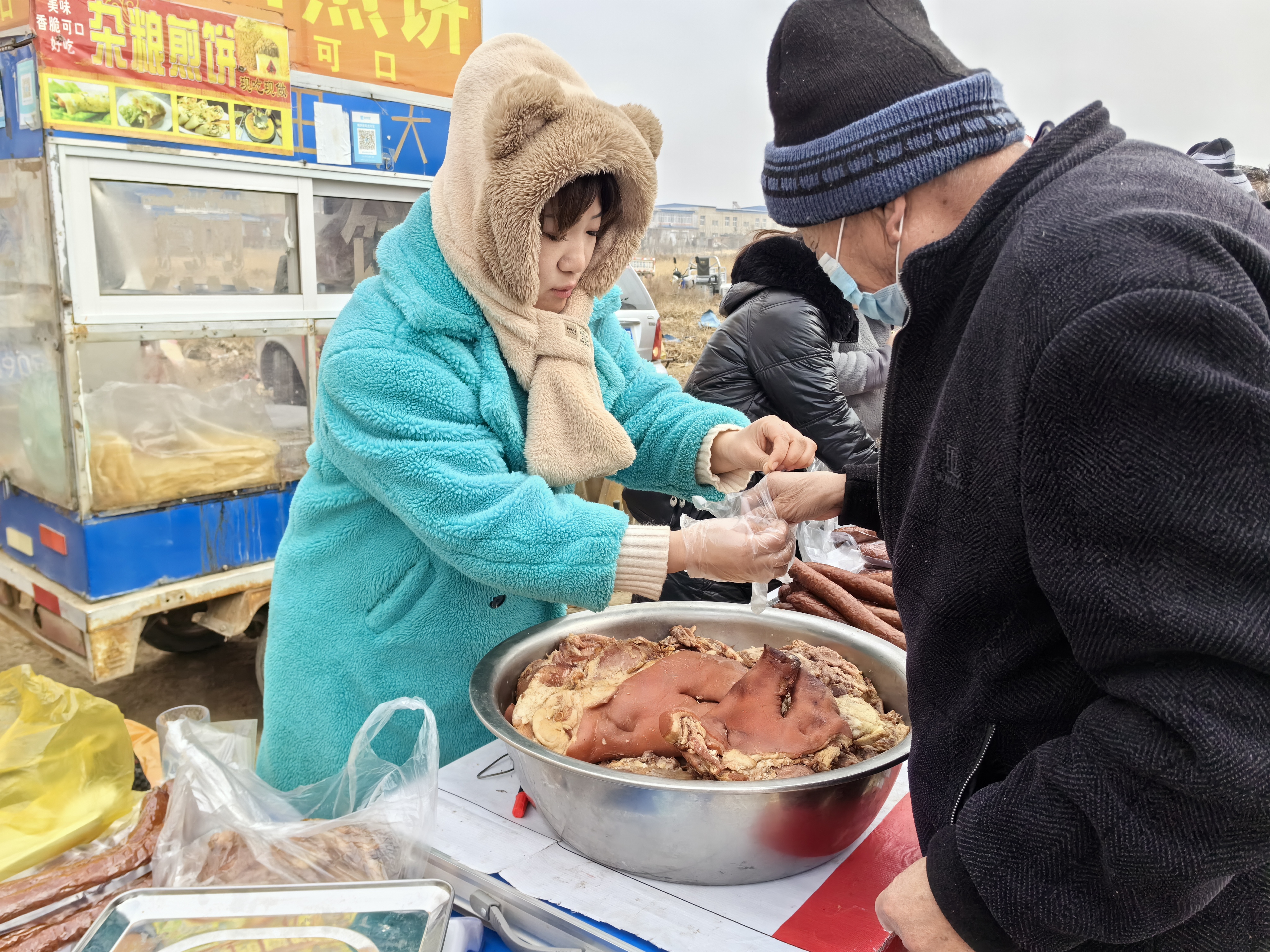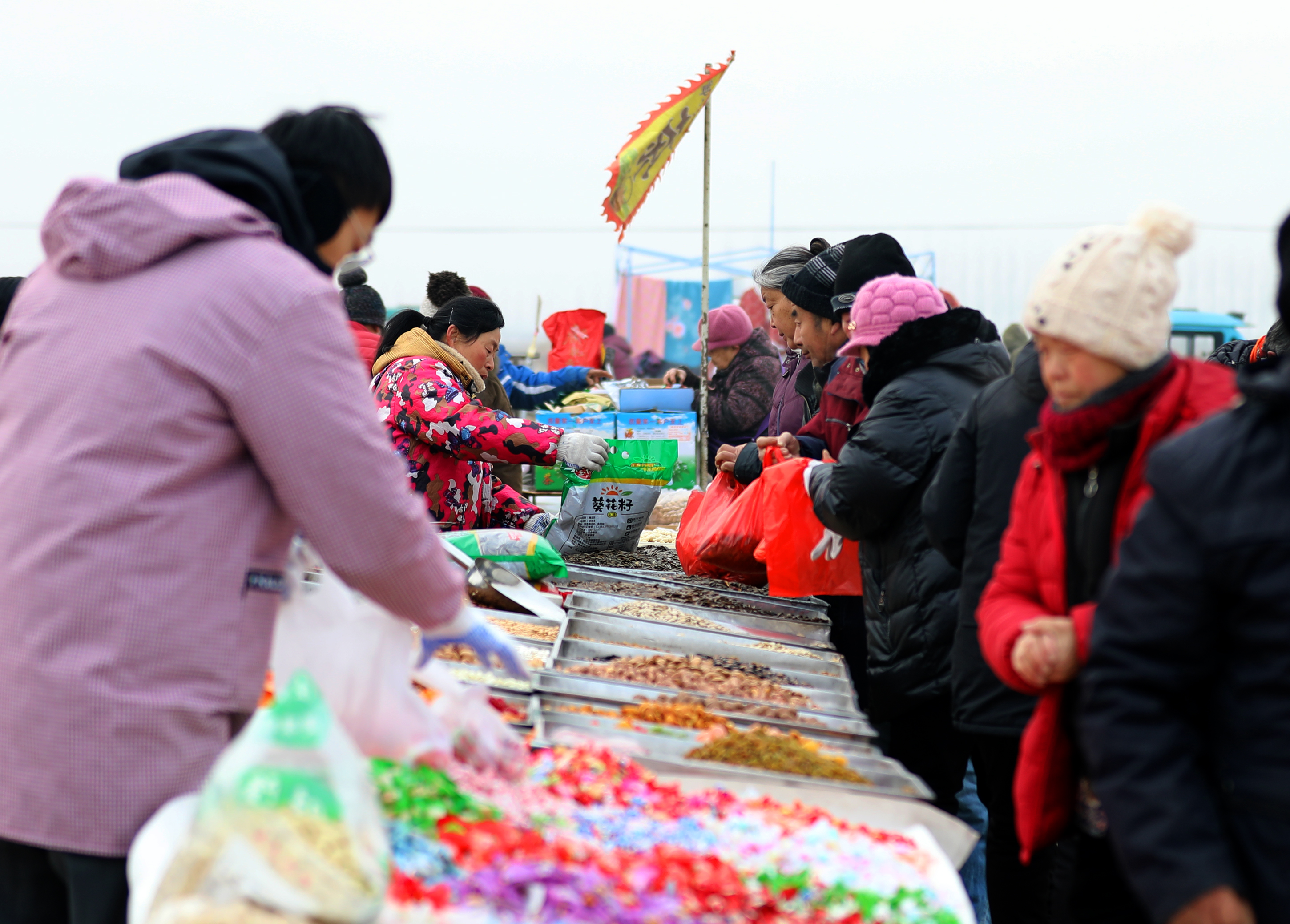 “大娘,來點干果呀!”“咱賣的都是現殺現賣的羊肉,肉質鮮嫩有保障。”……大集上商販們賣力地吆喝著,商品從新鮮的肉禽蛋奶、蔬菜瓜果,到種類繁多的干果糖茶、火紅的對聯窗花,好吃的、好看的、好玩的應有盡有,各種商品無不透著節日的喜慶,一股濃濃的年味兒在這里彌漫開來。