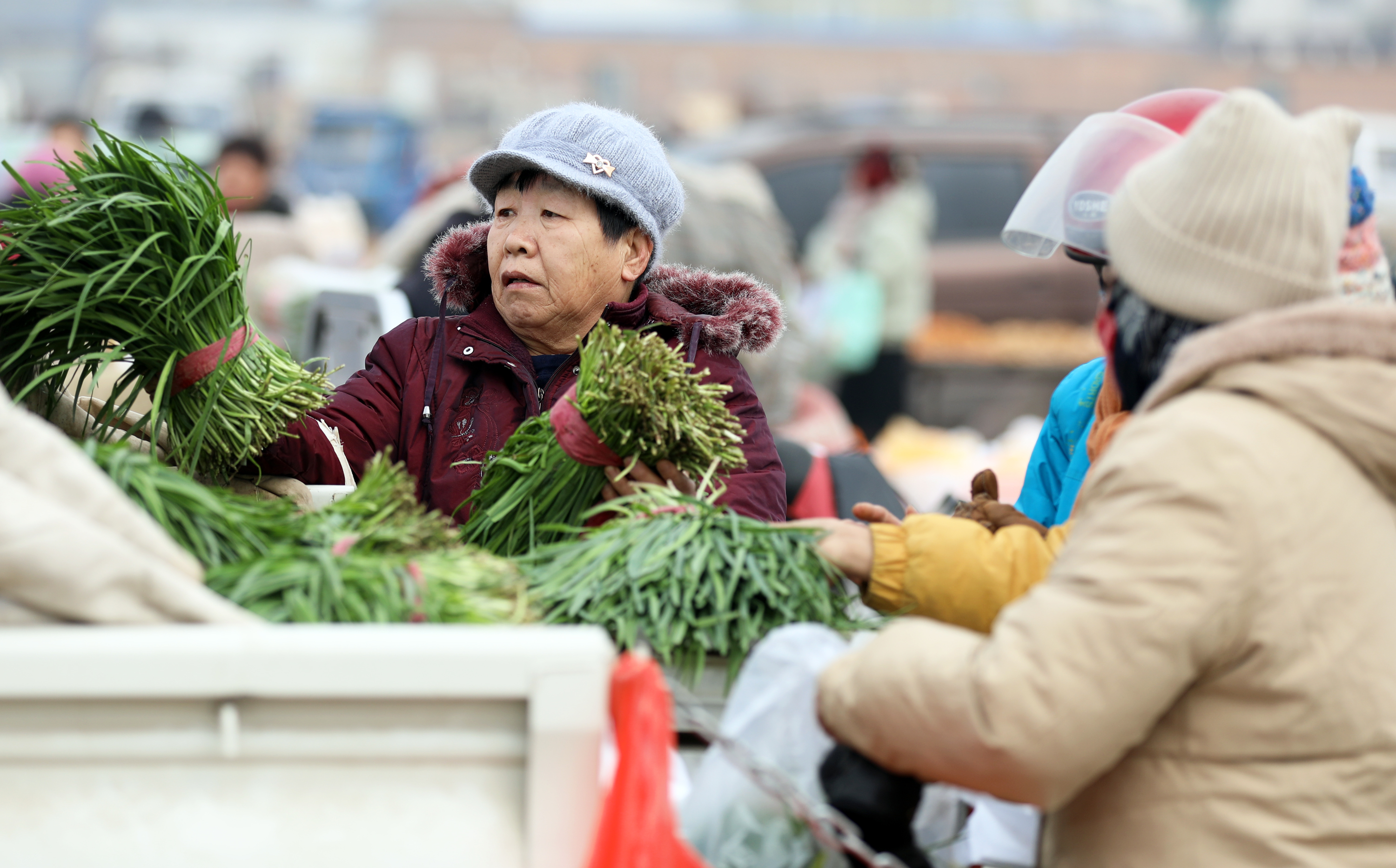 快7路公交車站牌前,站滿了手提“戰利品”等候坐車回家的人。等待的乘客中大部分是老人和孩子。“趕大集可是我小時候的記憶,現在市區難見到了。今天帶孫子來逛逛,買點年貨,感受一下不一樣的年味兒。”來自市區的李大爺對記者說。