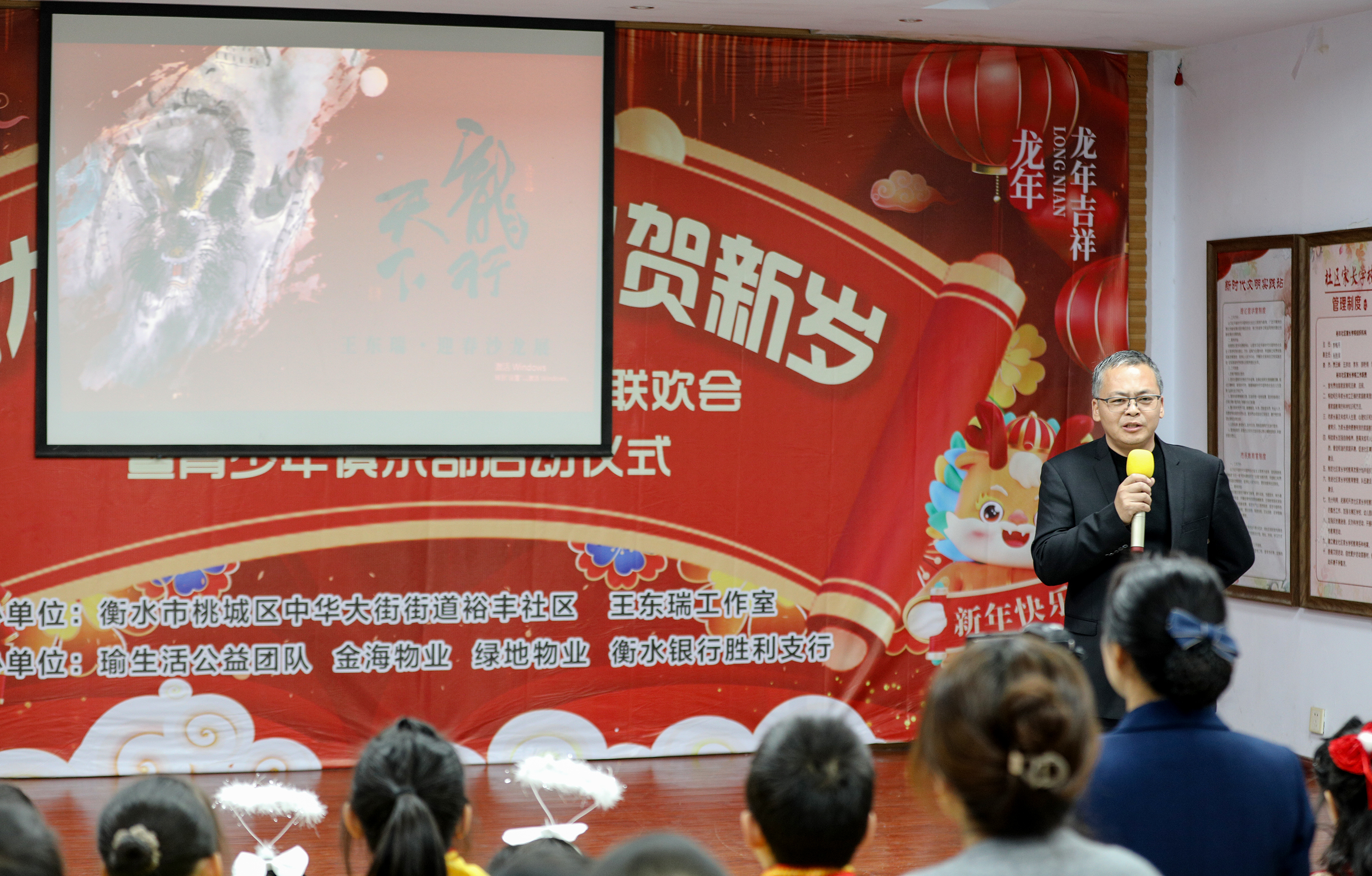 2月4日下午,一場以“龍”文化為主題的“金龍迎新春 童心賀新歲”聯歡會在衡水市桃城區中華大街街道裕豐社區精彩上演。近百名青少年登上社區舞臺,展示自我、綻放活力,傳承“龍”的精神和文化。