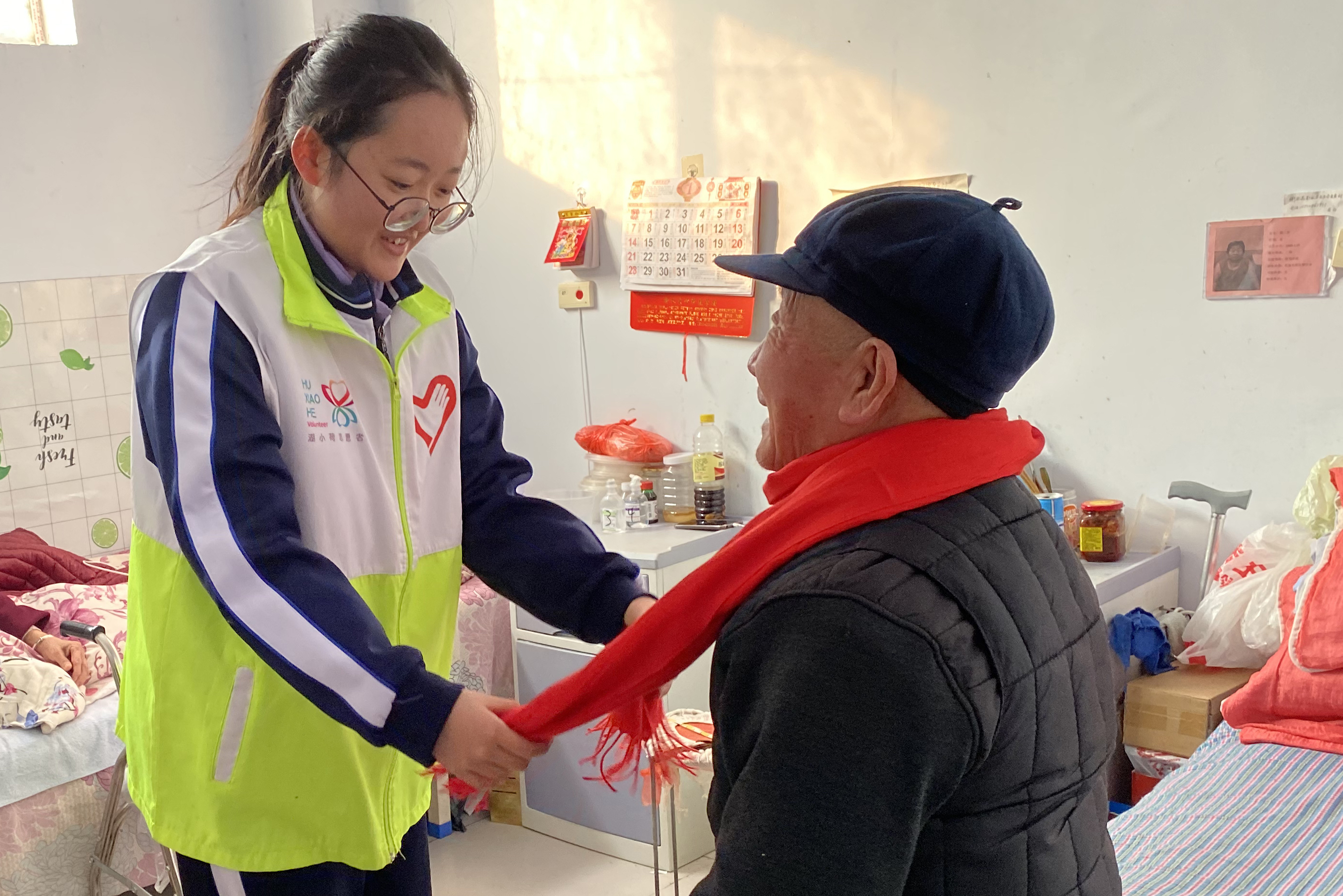 活動中,青少年志愿者們帶著真摯情感,為老人們做力所能及的事情,有的在房間里打掃衛生,有的在整理床鋪,還有的在擦拭門窗玻璃,房間內變得整潔透亮。在送上他們自費購買的紅色圍巾后,志愿者們還和老人們一起嘮家常,讓老人們倍感放松和舒適。養老院里到處洋溢著暖人的氣氛,歡樂的笑容掛在每一位老人的臉上。