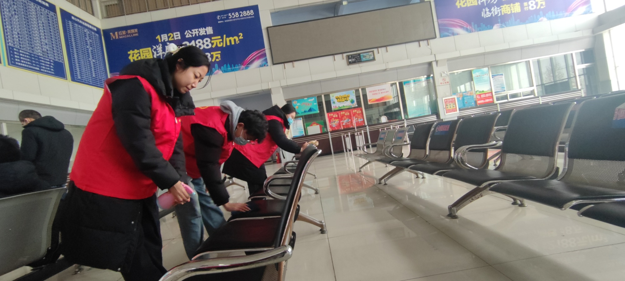 此外,志愿者們還利用空閑時間,對候車廳、停車場等公共區域進行清掃和消毒,為旅客營造一個干凈、整潔的候車環境。