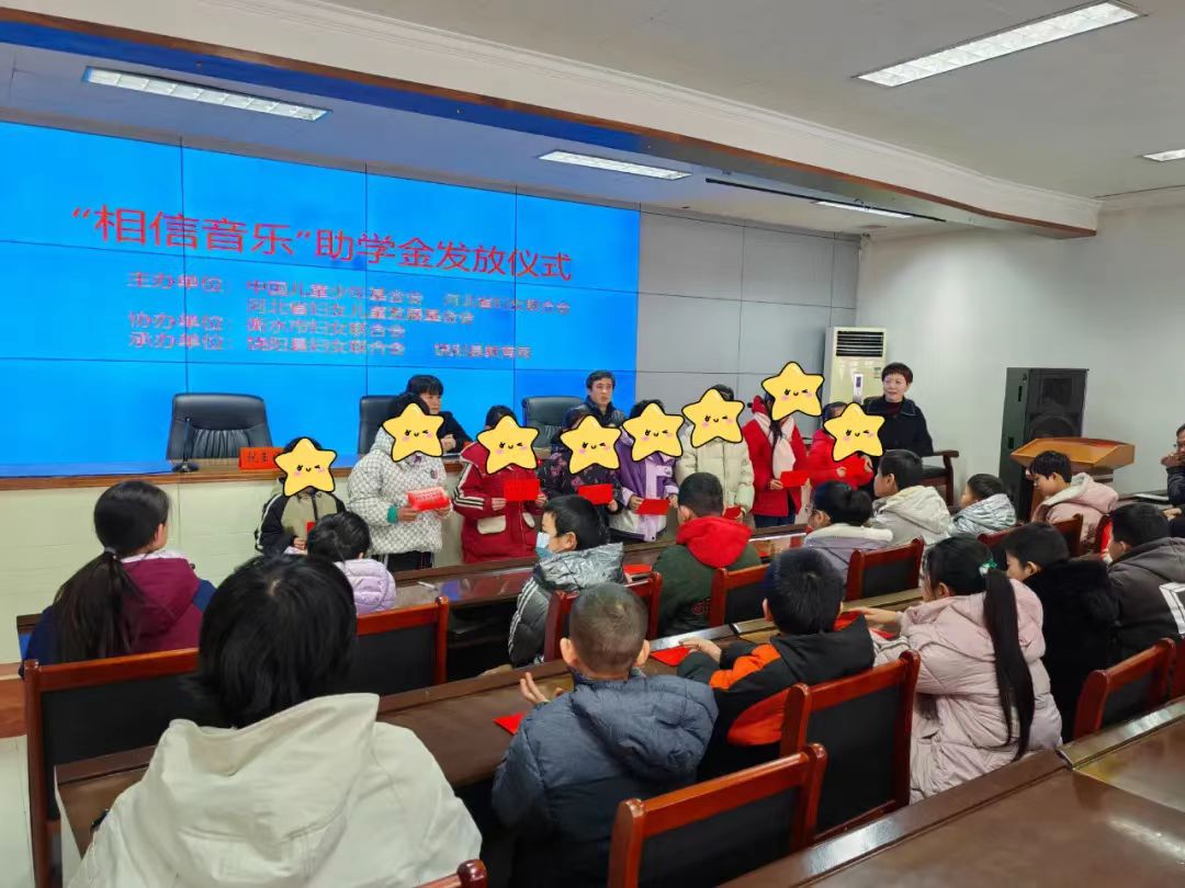 為關(guān)心關(guān)愛困難家庭學(xué)生健康成長,經(jīng)衡水市婦聯(lián)積極爭取,中國兒童少年基金會價值12萬元“相信音樂”助學(xué)項目落戶我市,項目惠及饒陽縣100名小學(xué)生,激勵他們勤奮學(xué)習(xí),成長成才。近日,捐贈儀式在饒陽縣教育局舉行。饒陽縣婦聯(lián)、縣教育局及部分受助小學(xué)生及其家長共計100余人參加活動。