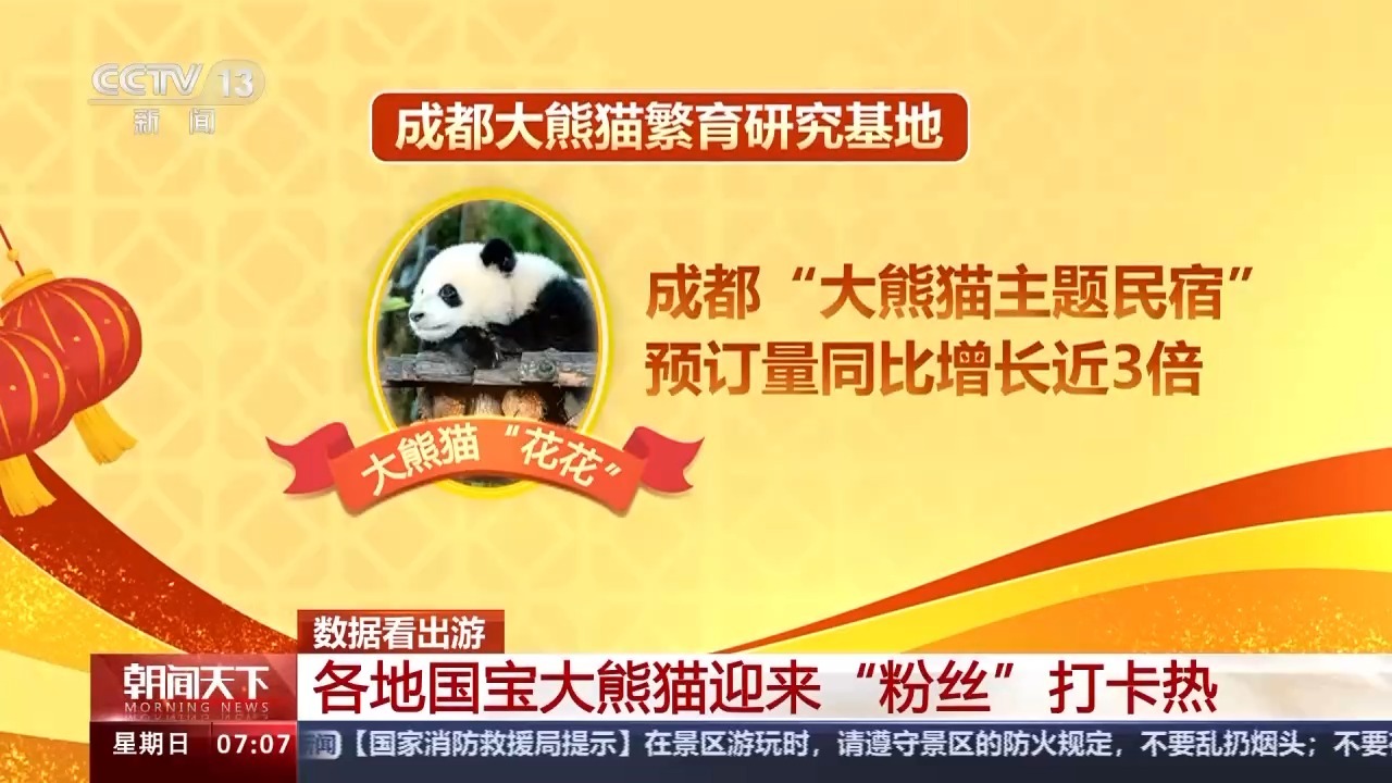 而成都大熊貓繁育研究基地的“花花”也吸粉無數,在今年春節吸引了更多客人前往。途家數據顯示,春節期間,成都“大熊貓主題民宿”的預訂量同比增長近3倍。
