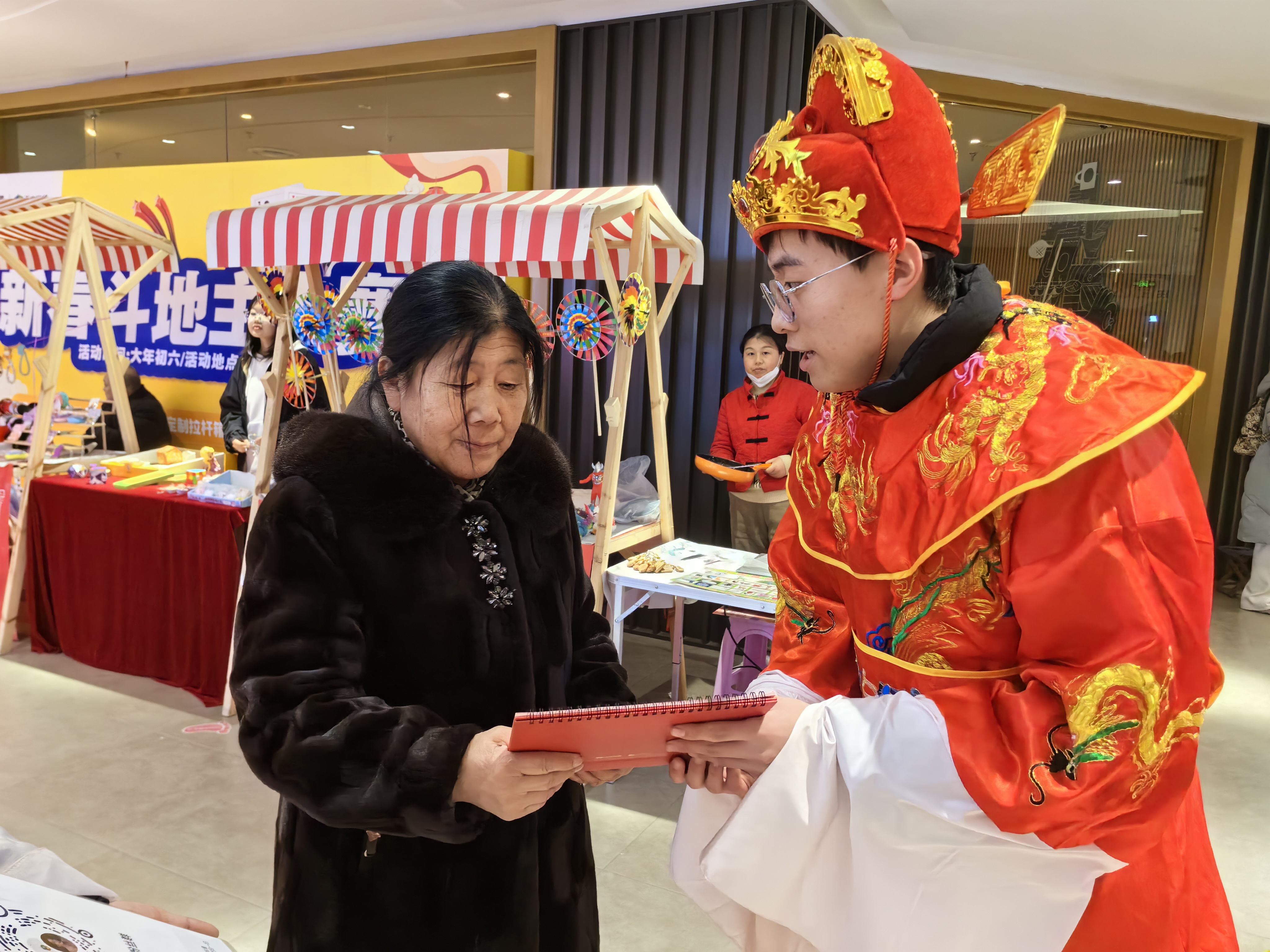 在心愿墻上寫下祝愿,在巨幅對聯前拍照打卡,與“財神”面對面……2月14日,大年初五,衡水“盛世桃城·龍行龘運”新春活動在市區匯中廣場舉行,傳統民俗與現代商場交融,為市民送上了一場體驗傳統年味兒的文化消費盛宴。