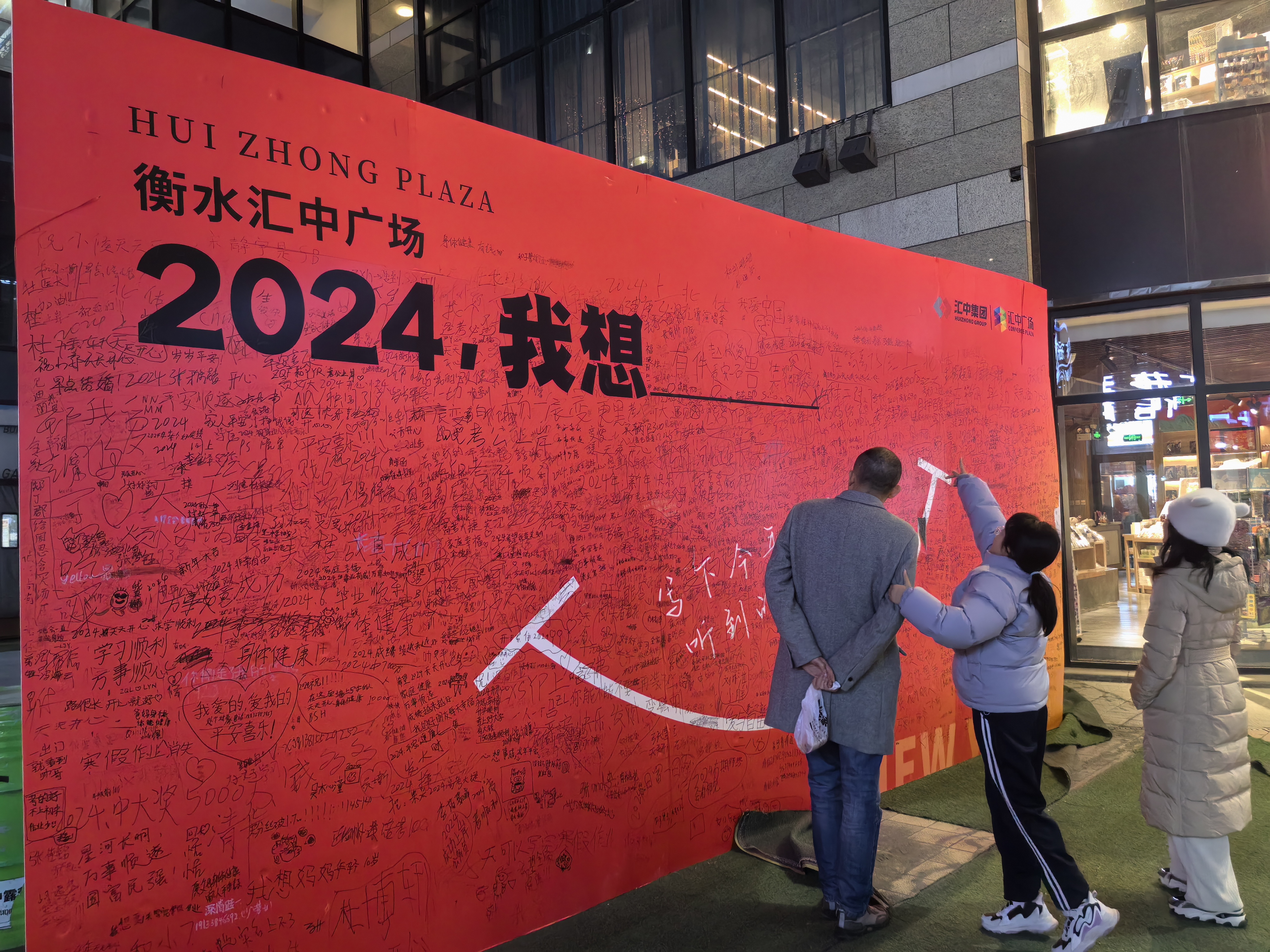 廣場最中央,高高的許愿墻吸引了不少游客和市民駐足觀賞。一句“2024,我想 ”下面,一段又一段承載著市民美好心愿的話語被寫在墻上——“我想爸爸媽媽身體健康”“希望在學習上進步”“祝大家龍年大吉,工作順利”……大家用書寫愿景的方式表達對生活工作的期許。新春送祝福,成為匯中廣場的一道新風景。