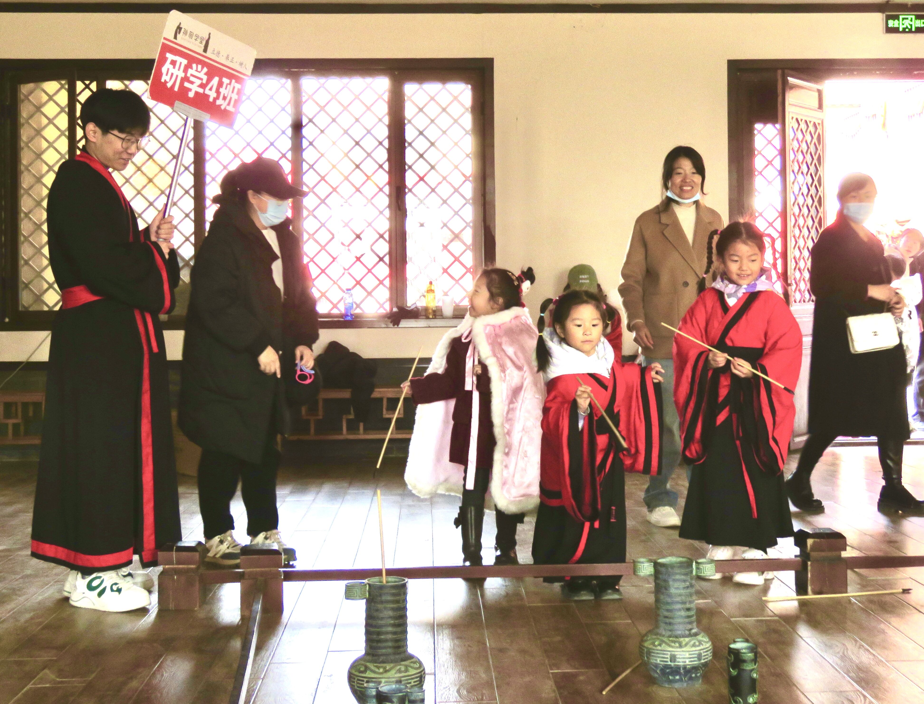 與傳統廟會相比,今年閭里古鎮廟會更加注重中華優秀傳統文化與研學旅游融合。依托衡水市研學基地課程優勢,推出朝闕禮、敬香禮、敬茶禮、敬花禮、雅樂系列、百工系列等數十項傳統文化體驗項目,全天開設10個研學班組,培養青少年尊師重教的良好品格,穿越千年探索中華文化的奧妙,感受古代禮儀的博大精深。
