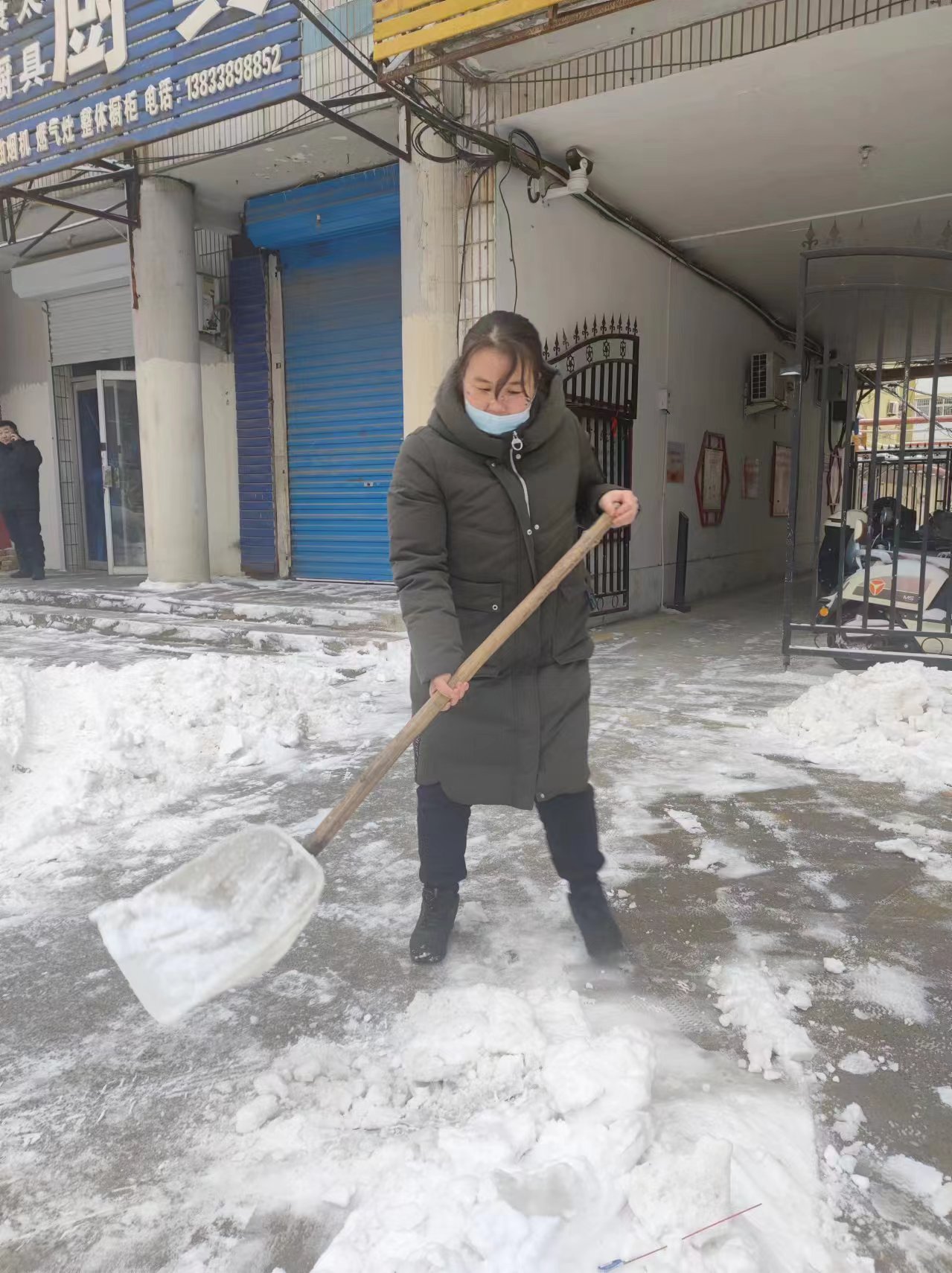 在轄區內的億城家和小區、農行家屬院、萃景小區、報社街街面……在職黨員和志愿者們有的負責清理積雪,有的負責鏟除薄冰,大家你鏟我推,齊心協力,干得熱火朝天。經過集體浴“雪”奮戰,大家為群眾清出一條條“出行平安路”。