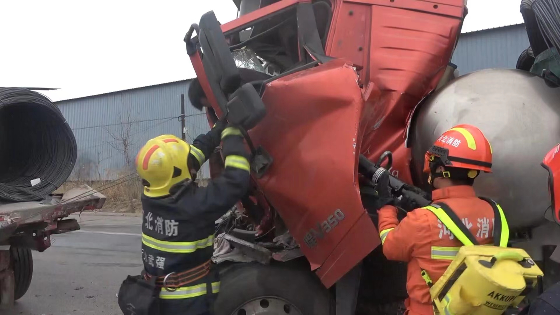 當天上午8時19分,衡水市消防救援支隊武強大隊出動2車12人趕到現場后,看到兩車由于追尾強烈撞擊后造成其中一輛機動車駕駛室嚴重變形,駕駛員雙腿被牢牢卡住,無法逃脫。時間緊急,指揮員根據現場情況立即下達救援命令,迅速組織指戰員設置警戒區域。