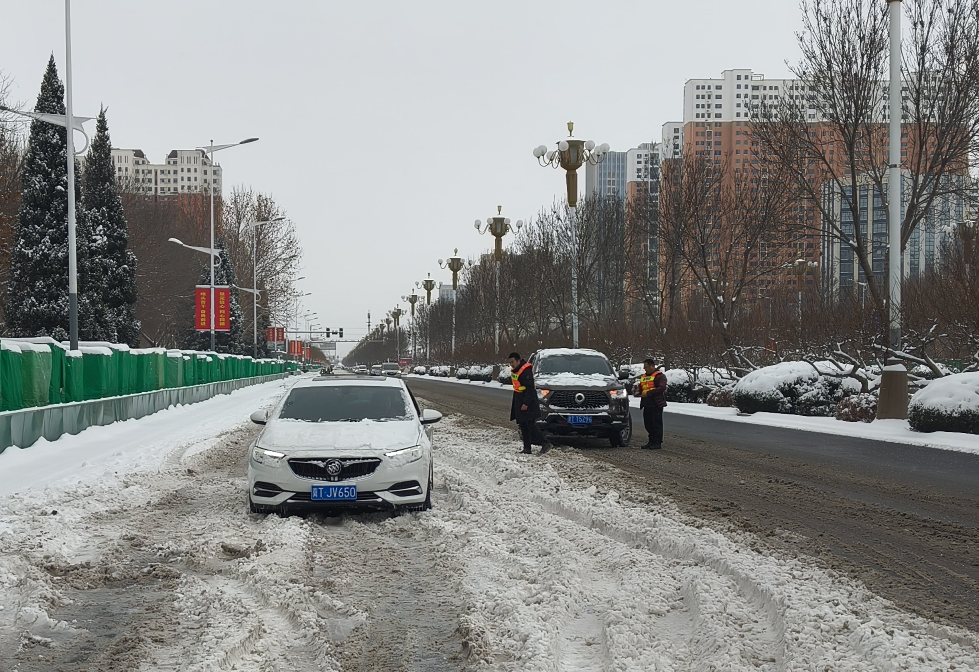 當天上午9時35分,在市區前進大街人民路至勝利路之間,一輛白色奧迪A4由于雪地打滑根本無法前行。衡水春暉救援隊志愿者陳光浩、秦陽、王振生、扈其勇四人開著三輛車前往事發地進行救援。到達現場,幾人了解詳細情況后,合力利用拖車繩對車進行牽引,經過大約半個小時的幫助,終于助車輛脫困。收隊途中,志愿者們在麗景名苑門口發現一輛白色凱越,在雪中打滑無法行駛,他們隨即下車,利用車載絞盤,將車拉出。此時,滏陽一路悅湖莊園附近有車陷入花池中,向衡水春暉救援隊發出求助。陳光浩、秦陽又立即調頭前往悅湖莊園投入到救援中。