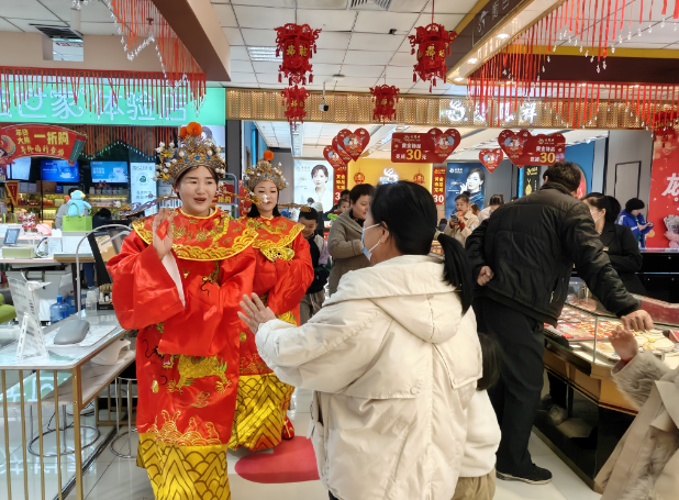 平價百貨事業(yè)部旗下的衡水市區(qū)/冀州/武邑/深州/棗強吉美購物廣場,五店聯(lián)動打造“吉美購物廣場年貨節(jié)”:買年貨、享好禮、送祝福……掀起龍年消費第一波熱潮。聚焦場內(nèi),處處洋溢著新春的喜悅氛圍,裝飾喜慶的柜臺、琳瑯滿目的商品、絡(luò)繹不絕的顧客,全家老少齊上陣,一派熱鬧紅火的場面:市區(qū)吉美購物廣場舉辦民俗年味集,邀請書畫名家揮毫潑墨,現(xiàn)場寫春聯(lián)、送春聯(lián)。由員工扮演的財神爺通過“財神送福”讓顧客“新春見喜”,吸引顧客爭相與之拍照;深州吉美購物廣場舉辦新春舞獅,為新年舞得一個好彩頭;顧客現(xiàn)場參與投壺活動,進行棉花糖DIY等活動,將新春儀式感拉滿!