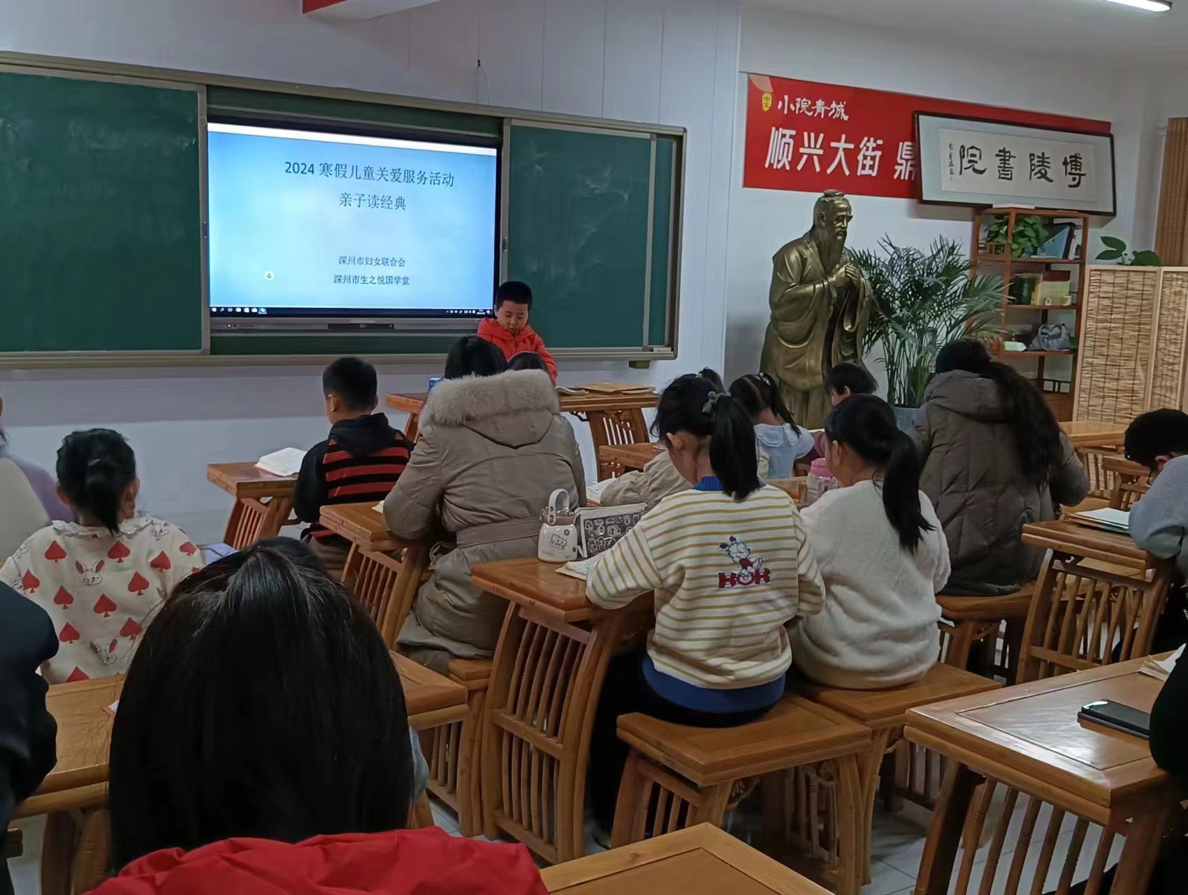 為積極培育和踐行社會主義核心價值觀,傳承文明家風家訓,進一步豐富兒童多彩假期生活,優化兒童健康成長環境,引導全市各家庭弘揚中華優秀傳統文化和社會主義家庭文明新風尚。近日,深州市婦聯聯合深州市生之悅國學堂開展“2024年寒假兒童關愛服務”書香飄萬家親子讀經典活動,32個家庭共沐書香。