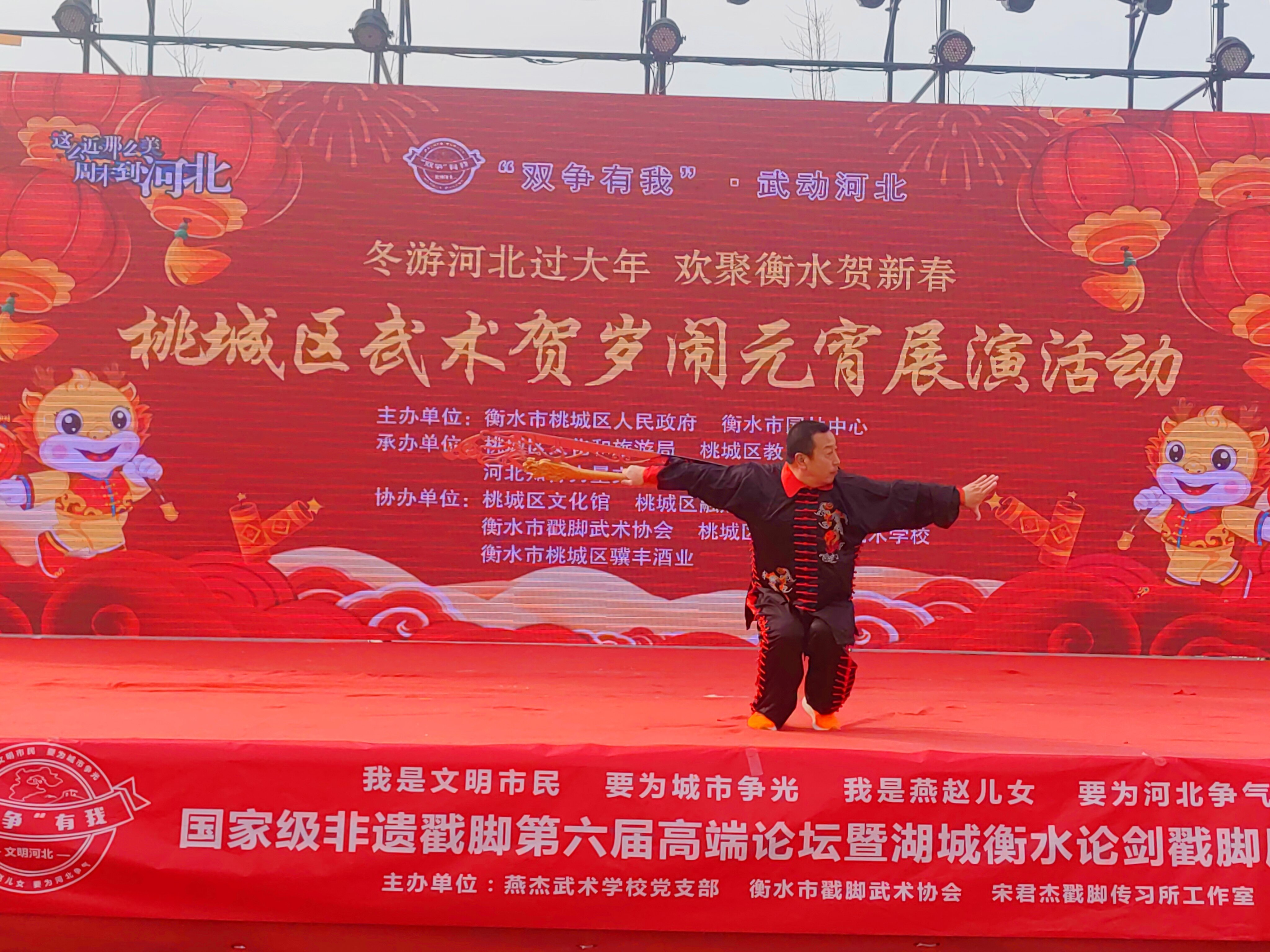 為進一步提高桃城區(qū)非物質(zhì)文化遺產(chǎn)項目的知名度、美譽度和影響力,提高人民群眾的非遺保護意識,營造歡樂、祥和、喜慶的中國年氛圍,2月24日(正月十五),桃城區(qū)武術(shù)賀歲鬧元宵展演活動在寶云公園大舞臺舉辦。