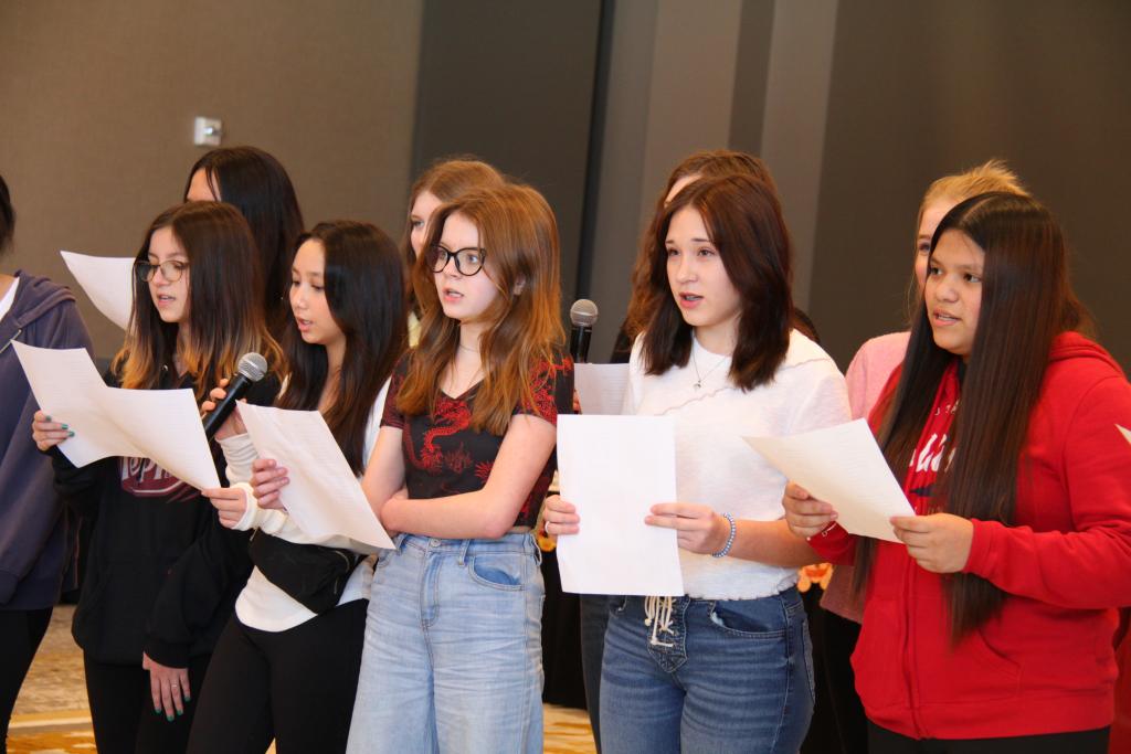 2月9日,在馬斯卡廷,馬斯卡廷中學學生在演唱中文歌曲。