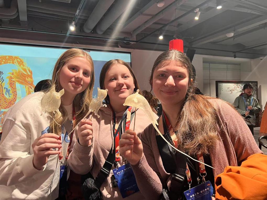 1月下旬,馬斯卡廷中學訪華代表團學生在上海體驗民俗活動。(受訪者供圖)