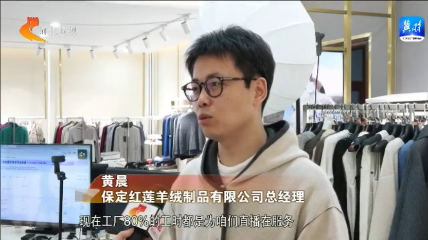 在瞄準"平臺"做文章,堅持以債券做園區,搭建縣域產業承載平臺的同時,我省還抓住直播帶貨等電商新潮流,為縣域特色產業拓展銷路。去年以來,我省印發專門工作方案,明確提出要結合縣域經濟特點,提升縣級電商服務中心功能,擴大電商覆蓋面。在保定蠡縣,傳統的毛紡織產業,就搭上了直播帶貨的快車。晚上七點,保定紅蓮羊絨制品的商業平臺賬號準時開始了直播。不到一個小時,直播間的銷售額已經超過了七萬元。企業負責人黃晨告訴我們,日均30萬以上的銷售額在紅蓮的直播間已是常態。
