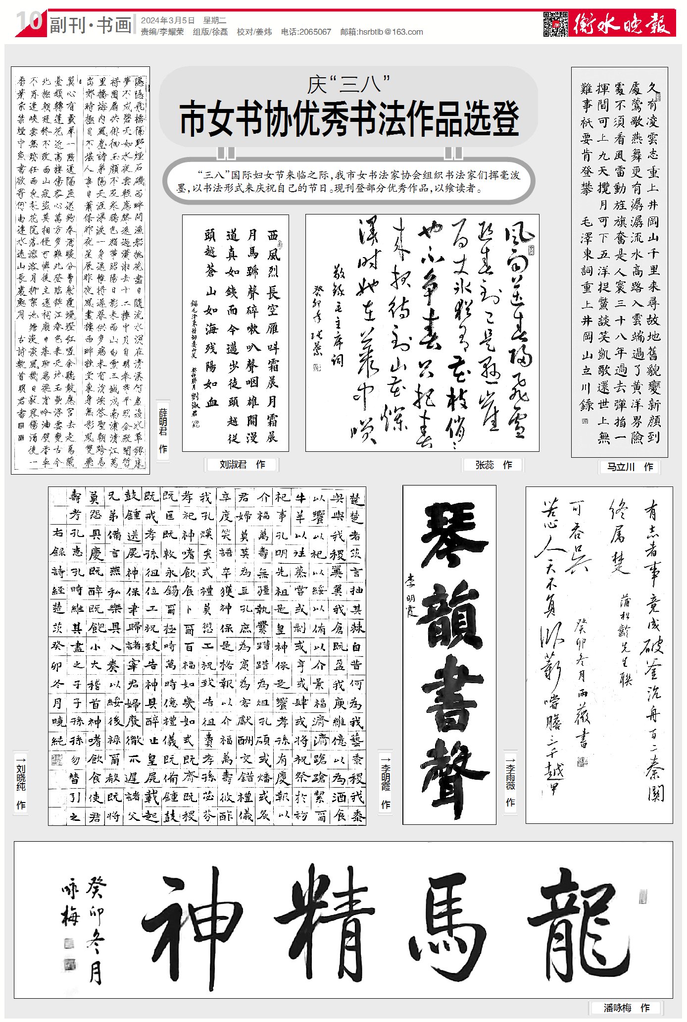 “三八”國(guó)際婦女節(jié)來(lái)臨之際,我市女書法家協(xié)會(huì)組織書法家們揮毫潑墨,以書法形式來(lái)慶祝自己的節(jié)日。現(xiàn)刊登部分優(yōu)秀作品,以饗讀者。