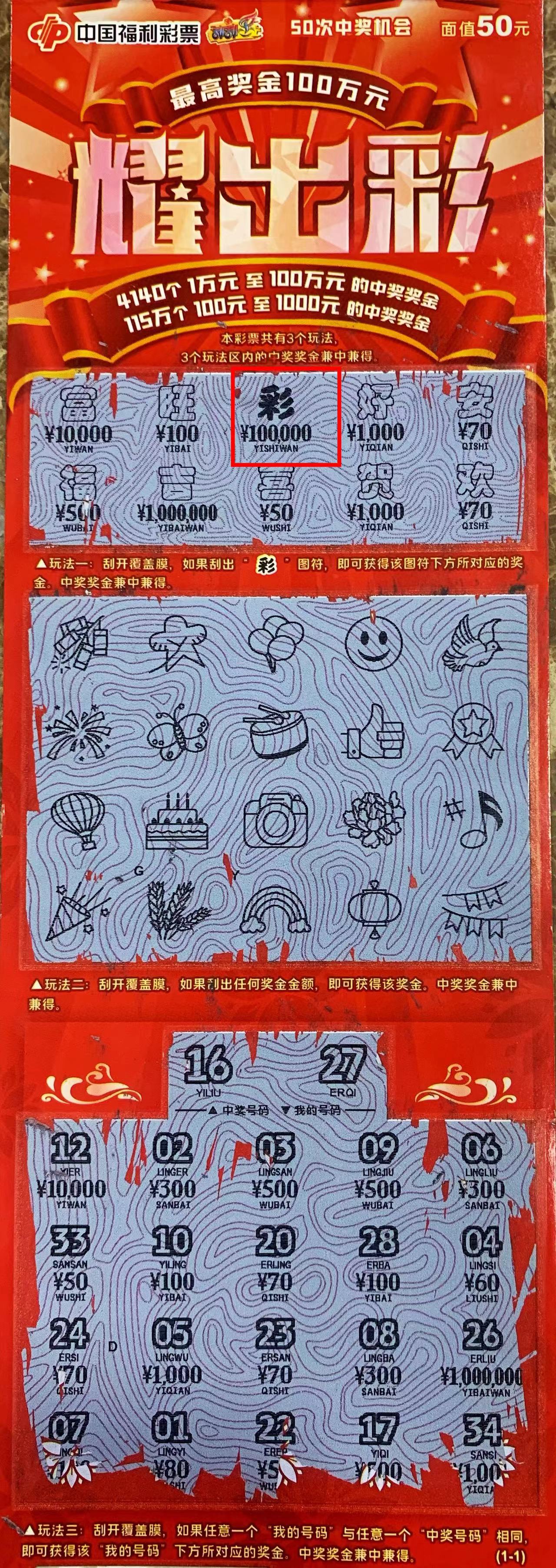 3月1日,衡水市故城縣的13185147號(hào)網(wǎng)點(diǎn)刮出“50元面值耀出彩”10萬(wàn)元大獎(jiǎng)。據(jù)購(gòu)彩者張先生介紹,他是福彩的忠實(shí)愛(ài)好者,雙色球、3D、刮刮樂(lè)均有涉獵。其中最喜歡的就是種類(lèi)豐富的刮刮樂(lè)。當(dāng)天,張先生和朋友飯后路過(guò)13185147號(hào)銷(xiāo)售網(wǎng)點(diǎn),便想著買(mǎi)幾張刮刮樂(lè)試試手氣。張先生偏愛(ài)大面額的刮刮樂(lè),瀏覽一番后,最終選中了票面耀眼的“耀出彩”。“我先刮了剩下的兩張散票,刮完想著就不讓老板拆整本了,準(zhǔn)備選別的款。”張先生介紹。“沒(méi)事,我給你再拆一本吧!”正在猶豫時(shí),老板很痛快地給他拿出了一本新的“耀出彩”。沒(méi)刮幾張,張先生就在一張彩票上刮出一個(gè)加黑的“彩”字。根據(jù)游戲規(guī)則,出現(xiàn)該圖符可以獲得下方顯示的獎(jiǎng)金。張先生慢慢刮開(kāi)下方對(duì)應(yīng)的金額時(shí),發(fā)現(xiàn)“1”后面有好多個(gè)“0”,最后一數(shù),竟然是10萬(wàn)元!