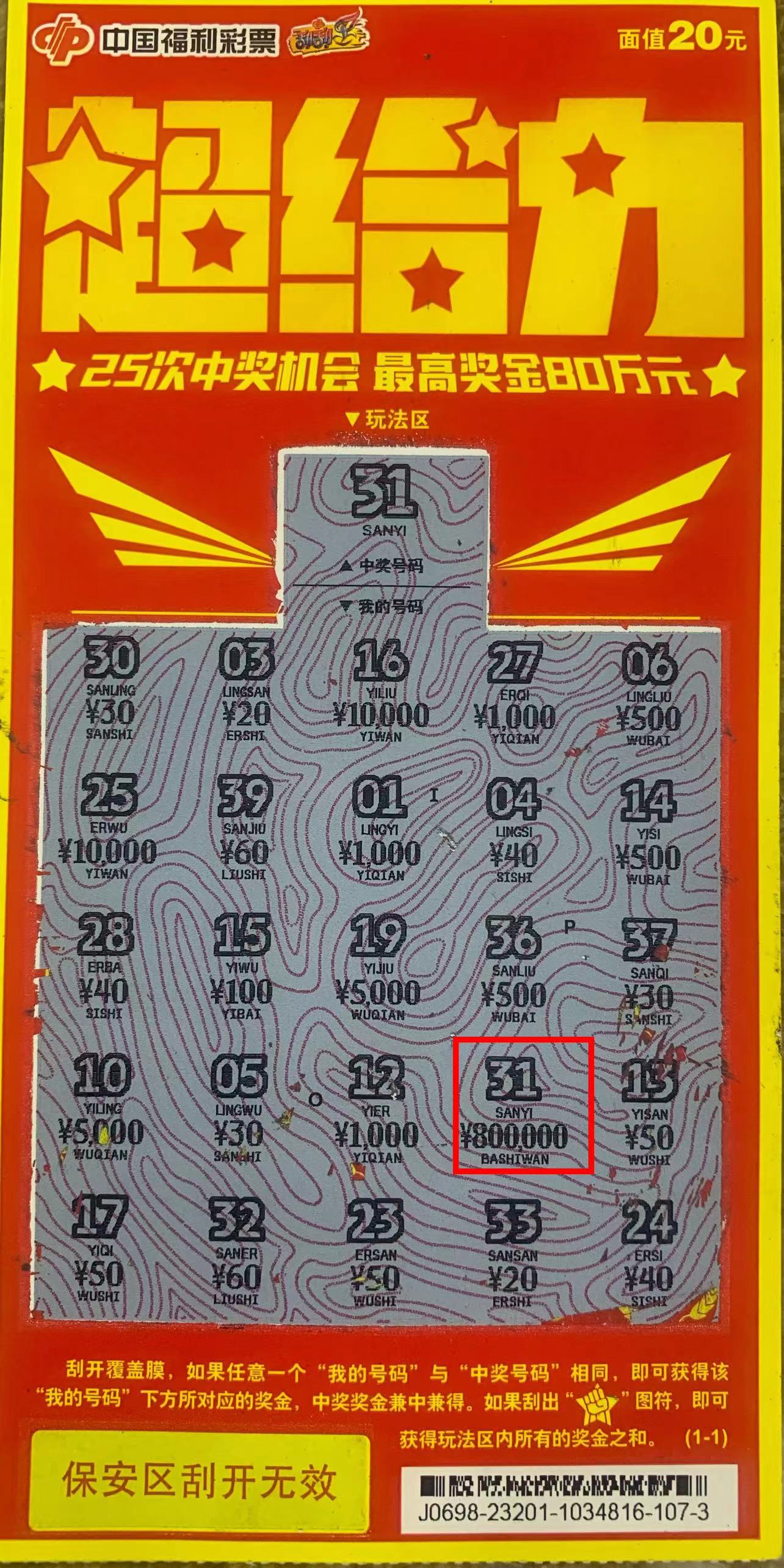 無(wú)獨(dú)有偶。3月5日,故城縣的13180347站一購(gòu)彩者喜中“超給力”最高獎(jiǎng)金80萬(wàn)元。中獎(jiǎng)?wù)呃钕壬榻B,他于當(dāng)日晚10時(shí)許去的彩票店,當(dāng)時(shí)就是想進(jìn)去放松一下,選擇了刮刮樂(lè)“超給力”圖個(gè)好彩頭。李先生表示,沒(méi)想到第二張就出現(xiàn)了中獎(jiǎng)號(hào)碼,刮開(kāi)下邊的中獎(jiǎng)金額,竟然中了80萬(wàn)最高獎(jiǎng)!