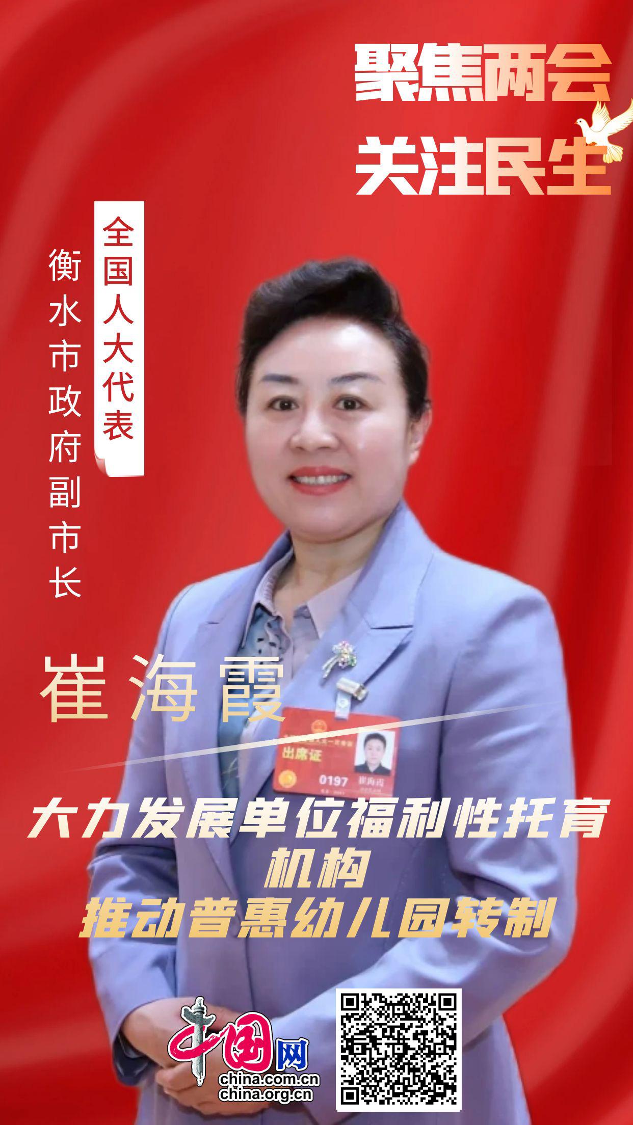 在今年的全國兩會上,全國人大代表、衡水市政府副市長、民革河北省委副主委崔海霞建議,發展普惠托育服務,推動一批幼兒園閑置資源轉化成普惠托育機構。