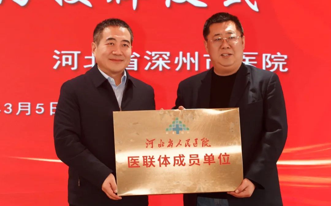 3月5日,河北省人民醫院與深州市醫院、深州市婦幼保健院醫聯體簽約授牌儀式在深州市醫院舉行。河北省人民醫院院長黨懿、副院長郭藝芳及包括5名深州籍在內的20余名省級知名專家,深州市政府、衛健系統相關人員等百余人參加活動。
