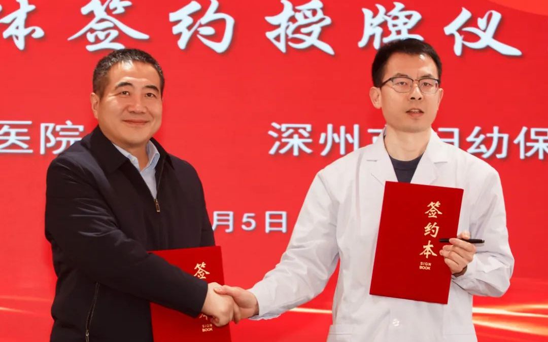 隨后,黨懿分別與深州市醫院院長王磊、婦幼保健院院長宋磊簽訂《河北省人民醫院醫聯體合作協議書》;黨懿、郭藝芳分別代表河北省人民醫院向深州市醫院和婦幼保健院授牌,深州市醫院黨委書記寇興和婦幼黨支部書記韓沖接牌。簽約授牌儀式在熱烈的掌聲中落下了帷幕。
