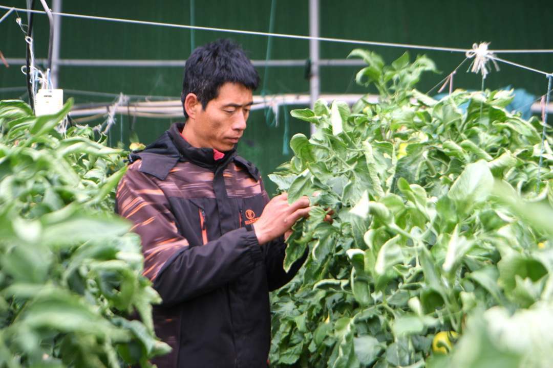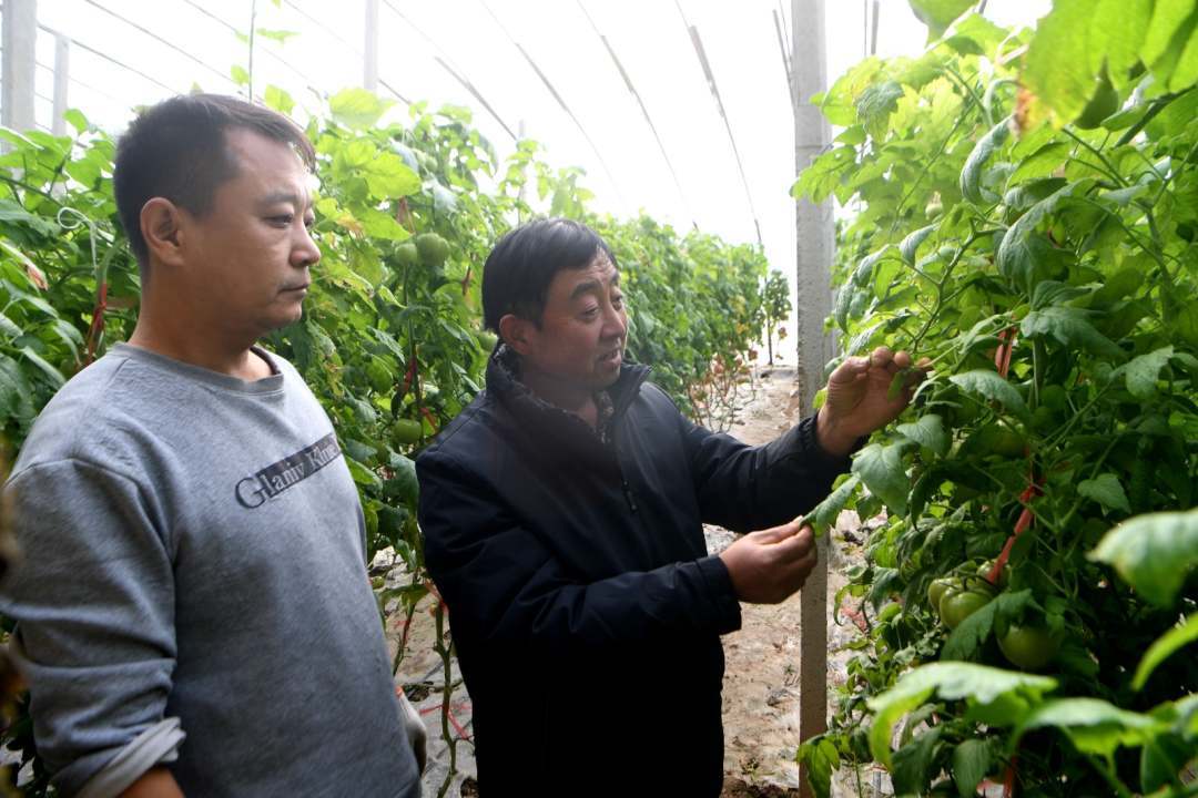 饒陽縣農業局特聘農技員實地查看西紅柿長勢。崔佳棟 攝