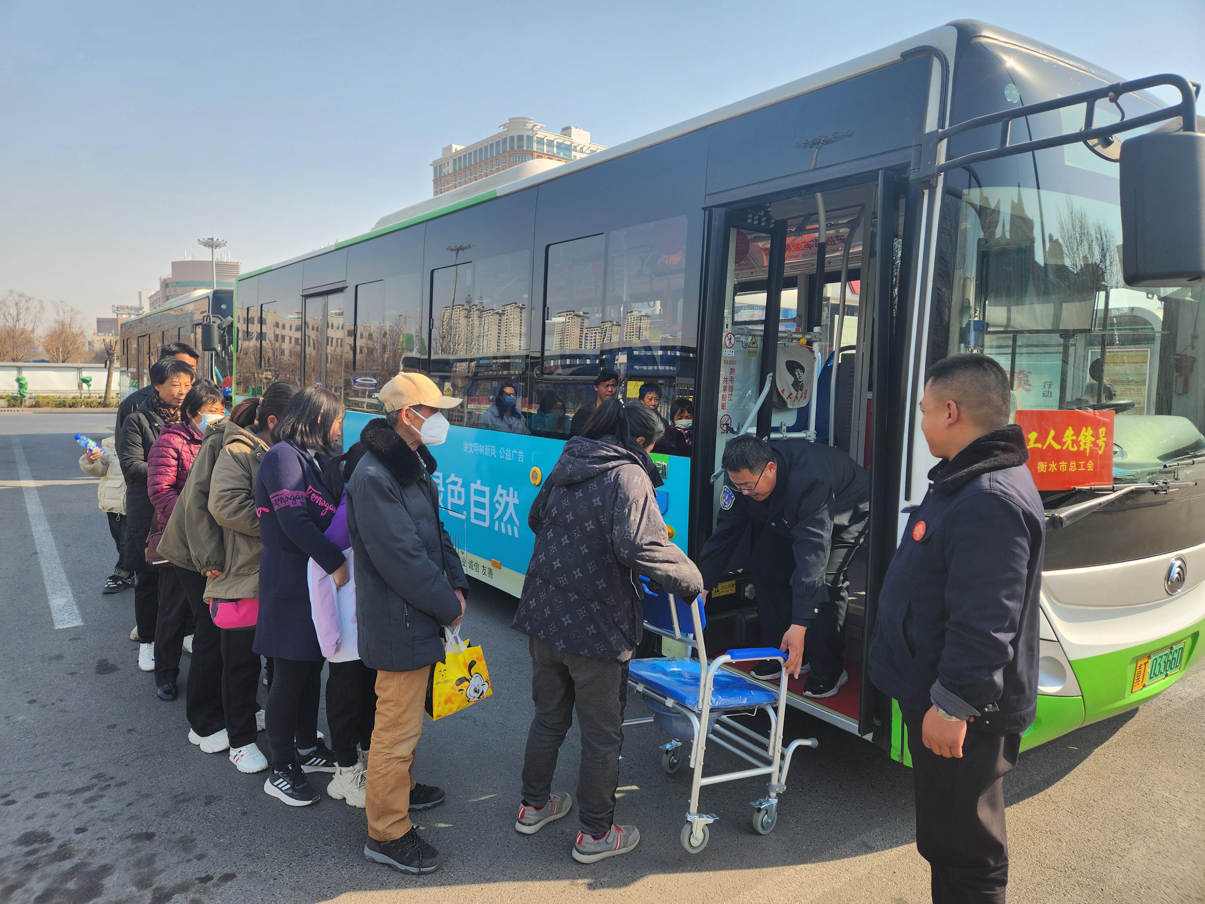 公交志愿者到衡水火車站和衡水北站兩個樞紐站,對站臺候車乘客進行文明勸導,引導乘客文明排隊、有序上車;為乘客解疑答惑、指引乘車線路;幫助老弱病殘孕等特需乘客搬運行李,解決市民出行中遇到的難題。同時倡導市民自覺抵制不文明行為,積極動員市民參與創建文明有序的城市環境。