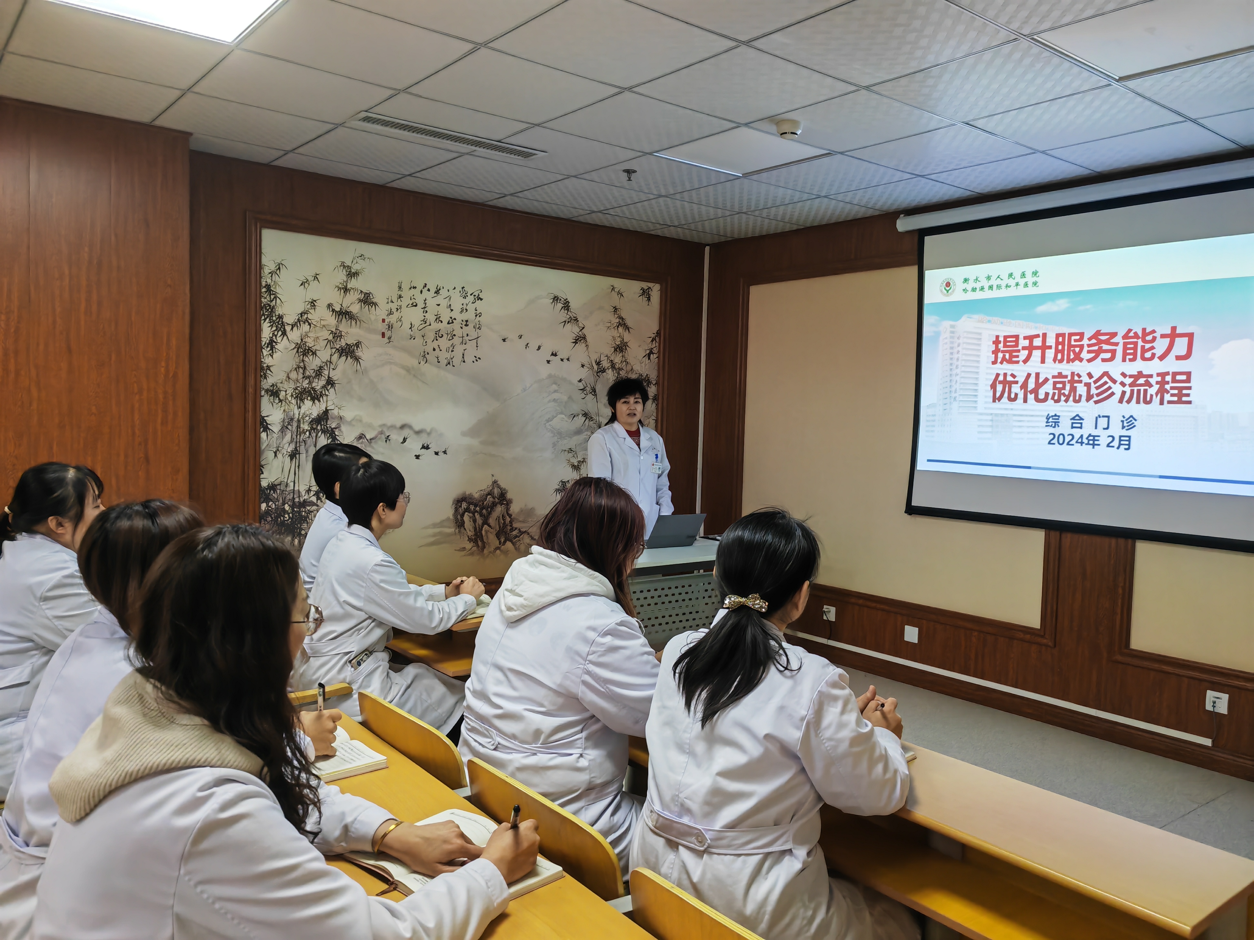 衡水市人民醫院(哈勵遜國際和平醫院)綜合門診、社區服務站負責人王艷靜,就圍繞患者所需,進行提升服務意識、優化服務流程培訓。