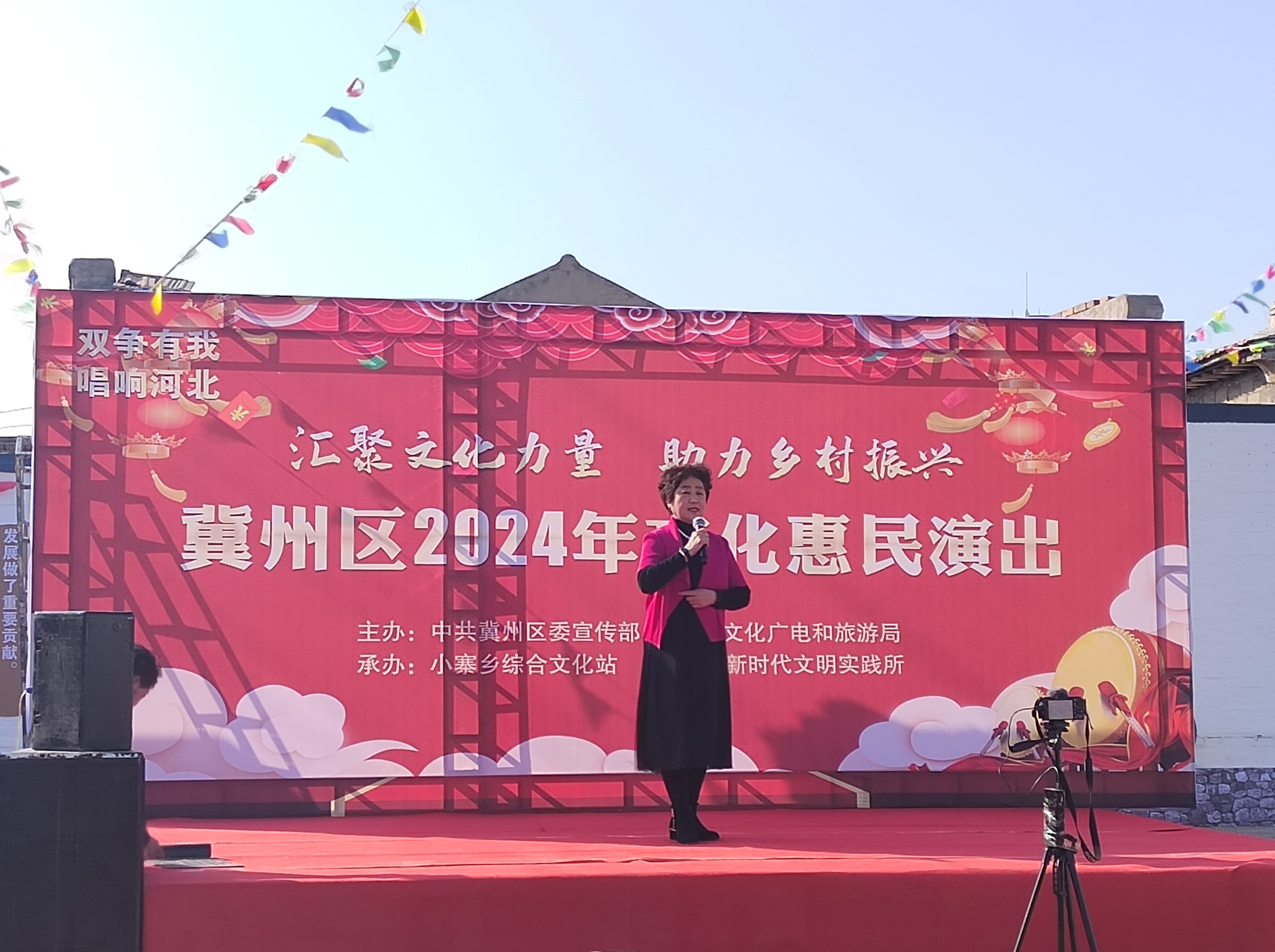 近日,衡水市冀州區文化廣電和旅游局籌備了“匯聚文化力量 助力鄉村振興”2024年文化惠民演出活動,組織優秀文化志愿者走進全區10個鄉鎮40個村,為基層群眾送上一道道“文化大餐”。3月15日,本次活動首場演出在小寨鄉大寨村成功舉辦。