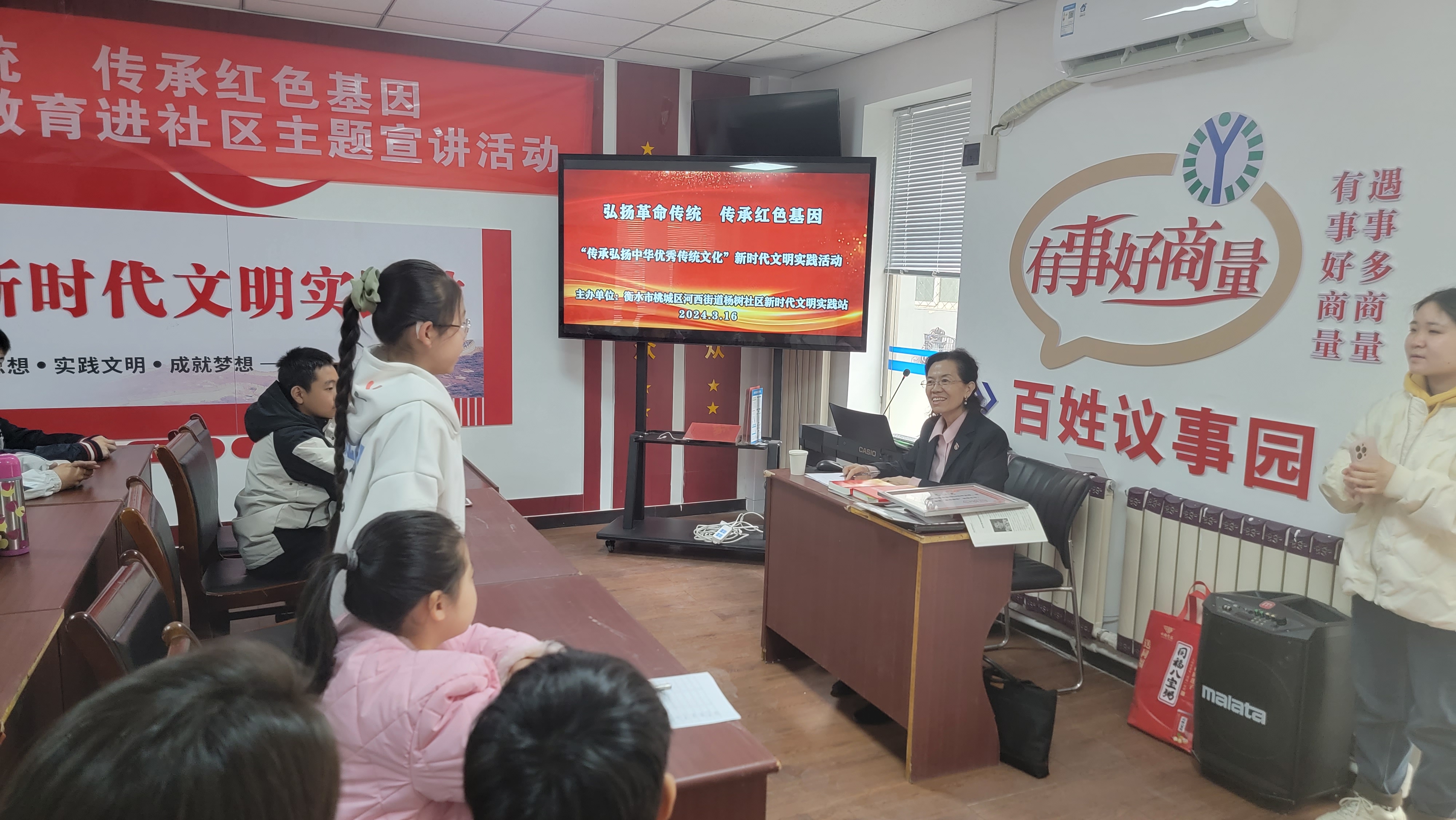 今年是新中國成立75周年,也是《愛國主義教育法》施行的第一年。為重溫紅色歲月,賡續(xù)精神血脈,3月16日上午,衡水市桃城區(qū)河西街道楊樹社區(qū)在社區(qū)新時代文明實(shí)踐站,舉行了一場主題為“弘揚(yáng)革命傳統(tǒng)、傳承紅色基因”的愛國主義教育宣講活動。此次活動邀請了桃城區(qū)人大代表、社區(qū)老黨員李蘭慧作現(xiàn)場宣講。