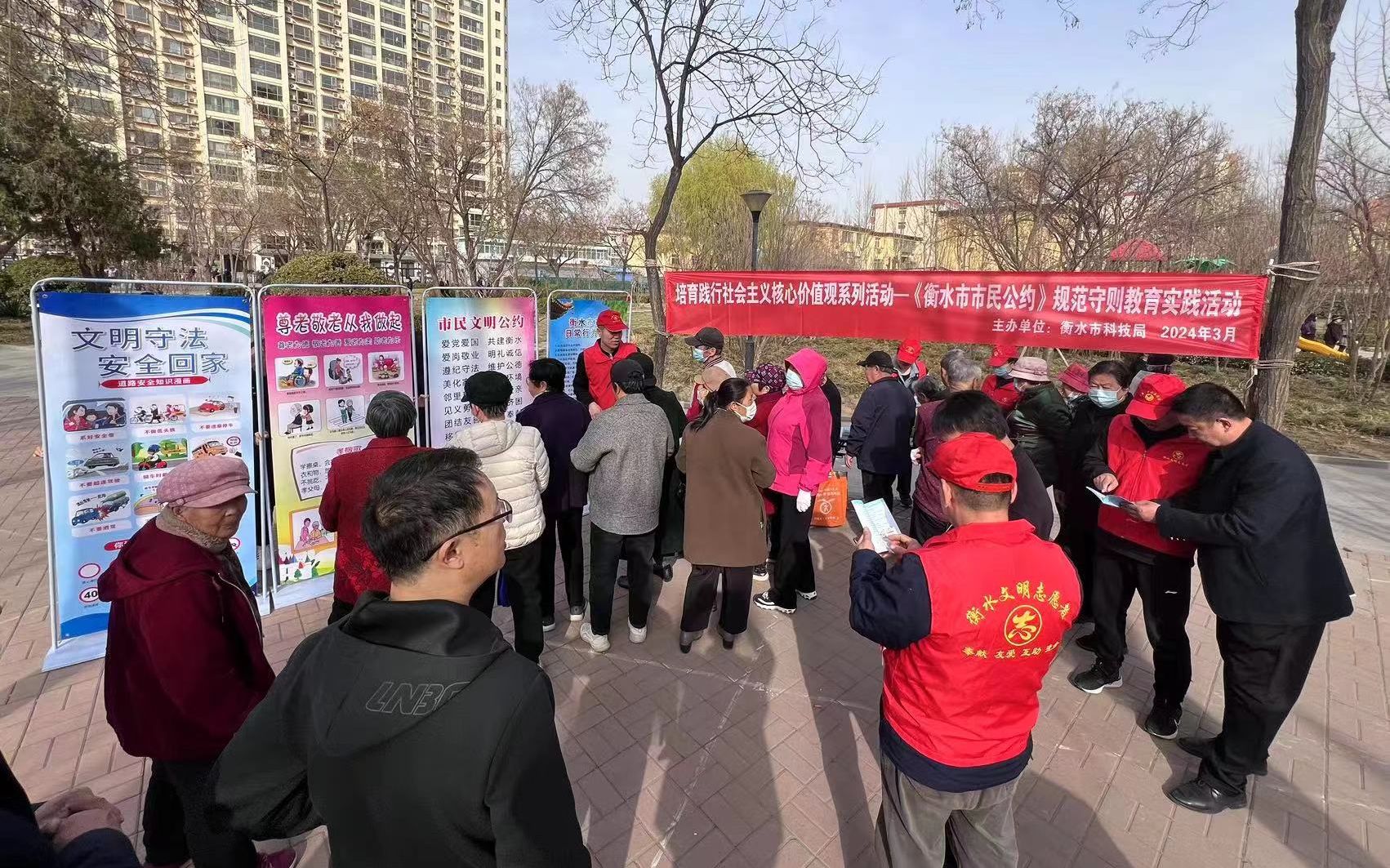 3月18日下午,衡水市科技局在市區中華公園小廣場開展了《衡水市市民公約》規范守則教育實踐活動。