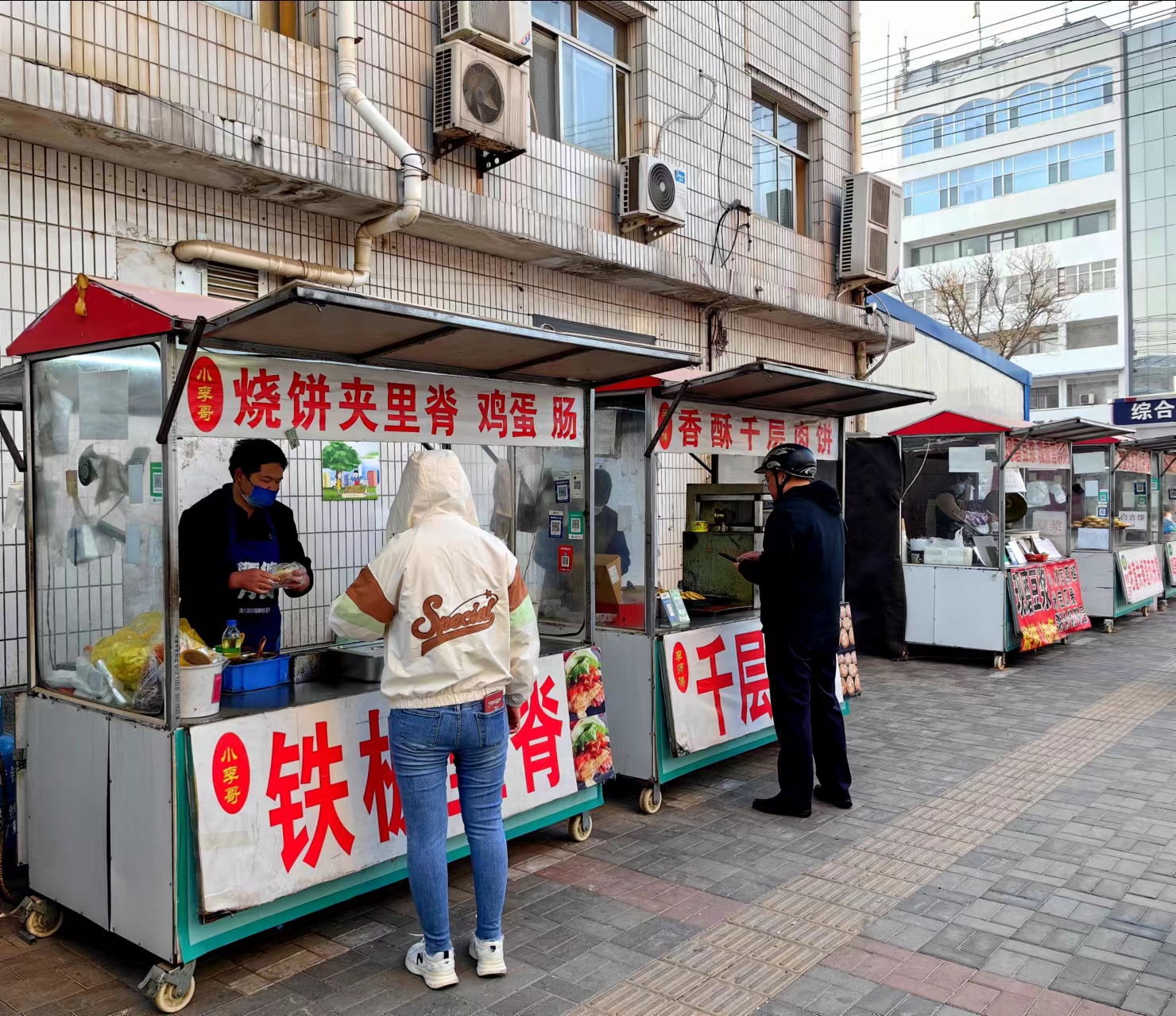 中華大街街道堅持“綜合治理、疏堵結合、標本兼治”的原則,創新在康寧街與新華路交叉口東北角劃定區域,設置了早餐“微市場”,讓商販進入指定地點定點限時經營。目前,康寧街早餐“微市場”已由9個攤位擴大至21個攤位,成為市區小街巷一道靚麗的風景線。“微市場”實行商戶自我經營管理模式,設立輪值“商戶長”制度,主要負責“微市場”的衛生保潔、秩序維持、文明行為、誠信經營等事項,以實際行動守護好“煙火氣”。