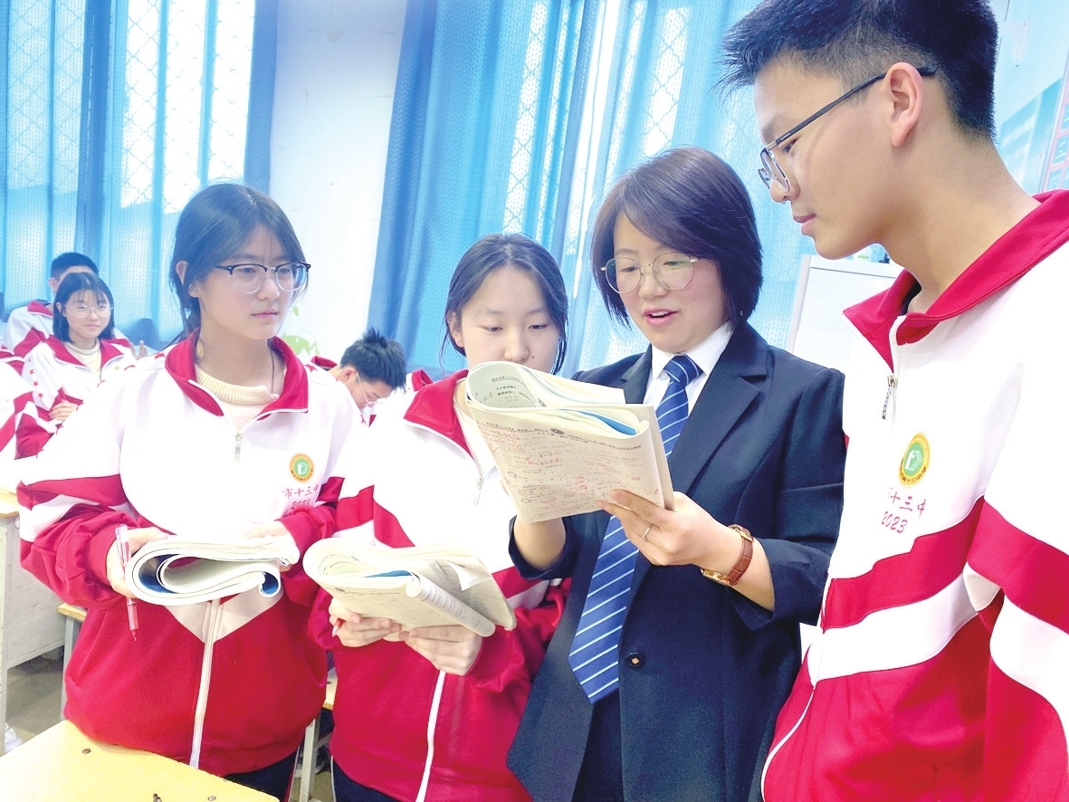 衡水十三中趙鳳倩老師在給同學(xué)們答疑解惑。劉元 攝