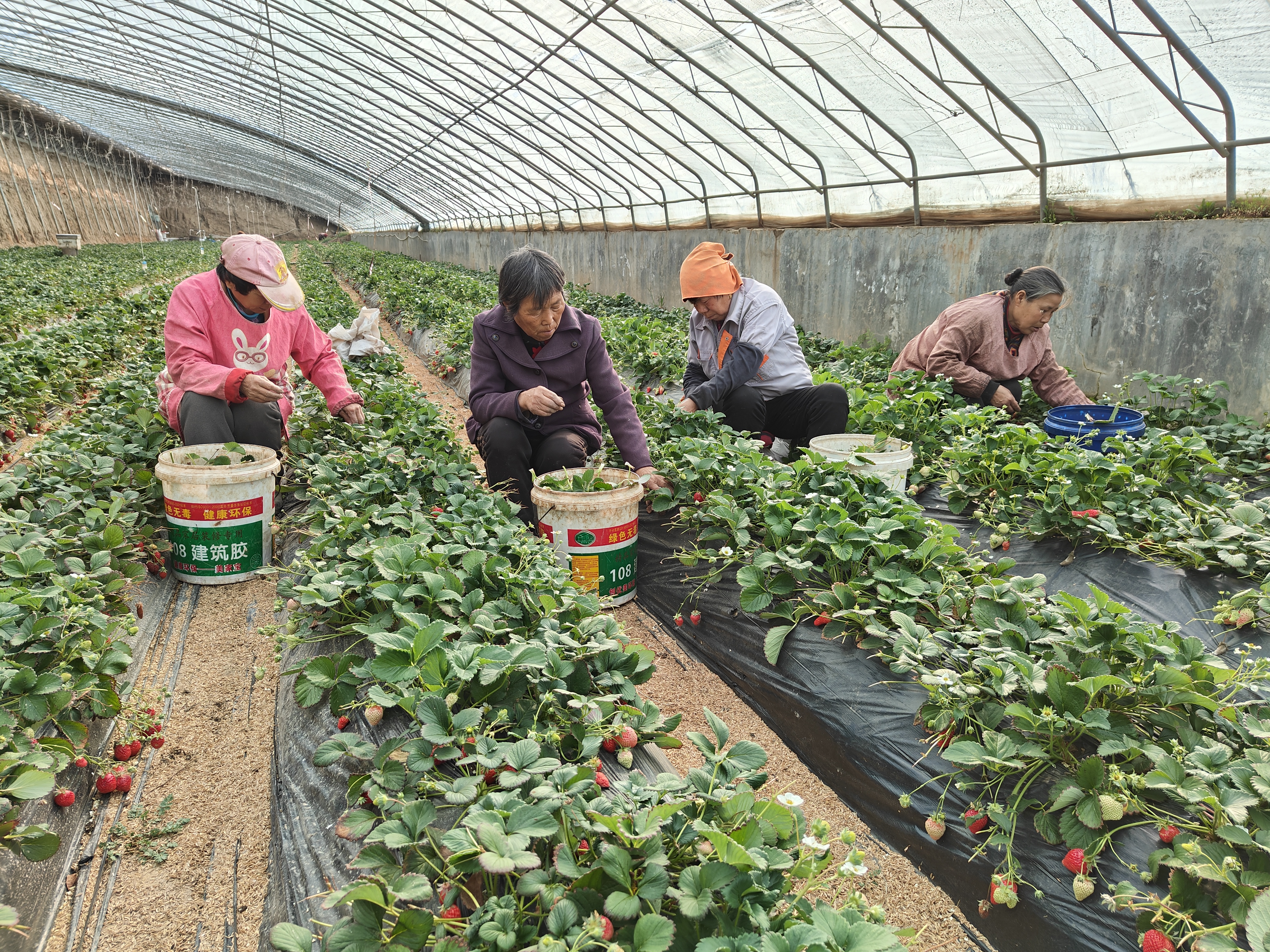“這個棚里的草莓都是自主育苗的,與之前相比,顏色更鮮艷、口感更鮮甜。來!嘗嘗咱這草莓。”種植戶支永振隨手摘了顆大草莓說道。
