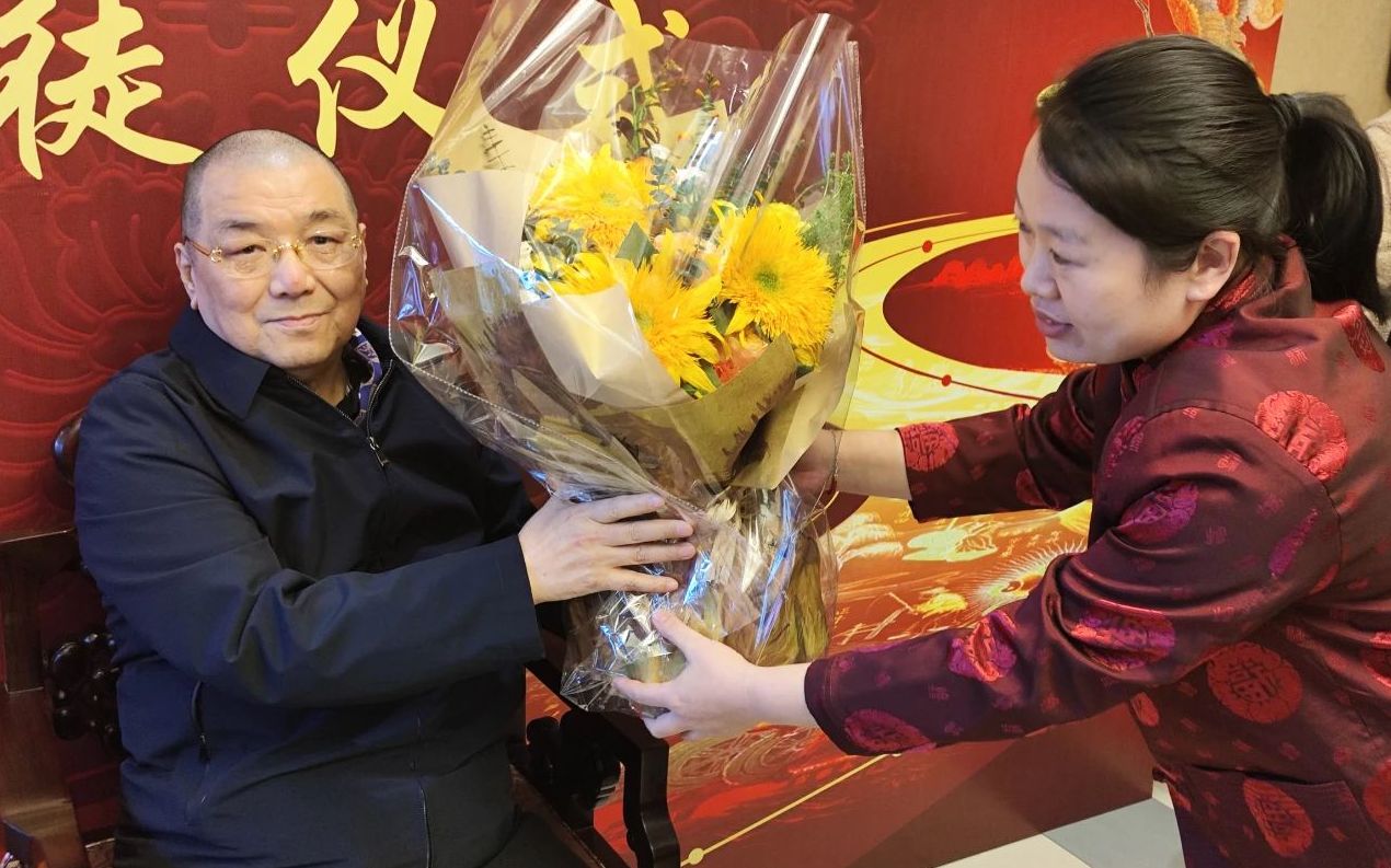 當天的拜師儀式簡潔而莊重,按照拜師程序,周穎與其他4名弟子們向師父上拜師帖、敬茶、獻花、行拜師禮,表達了對師傅的敬意和求學的誠意。首都國醫名師在接受拜師帖后,回禮賀氏管針傳承譜、印章,象征知識與責任的傳遞。在場的眾多同仁見證了這一激勵人心的時刻,并對周穎等中醫師未來的學術發展和臨床實踐充滿期待。