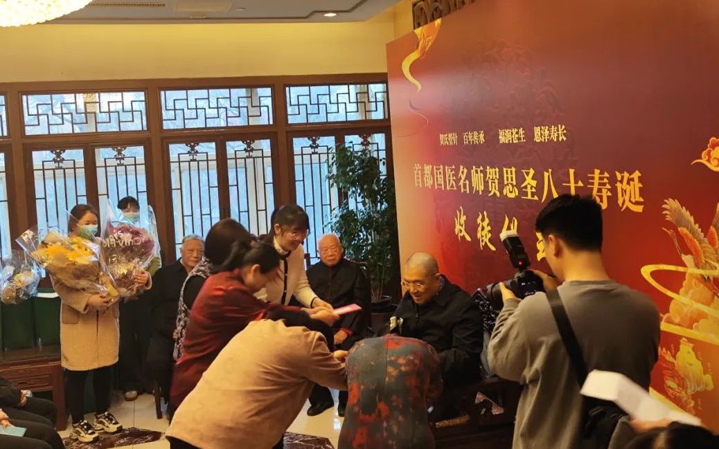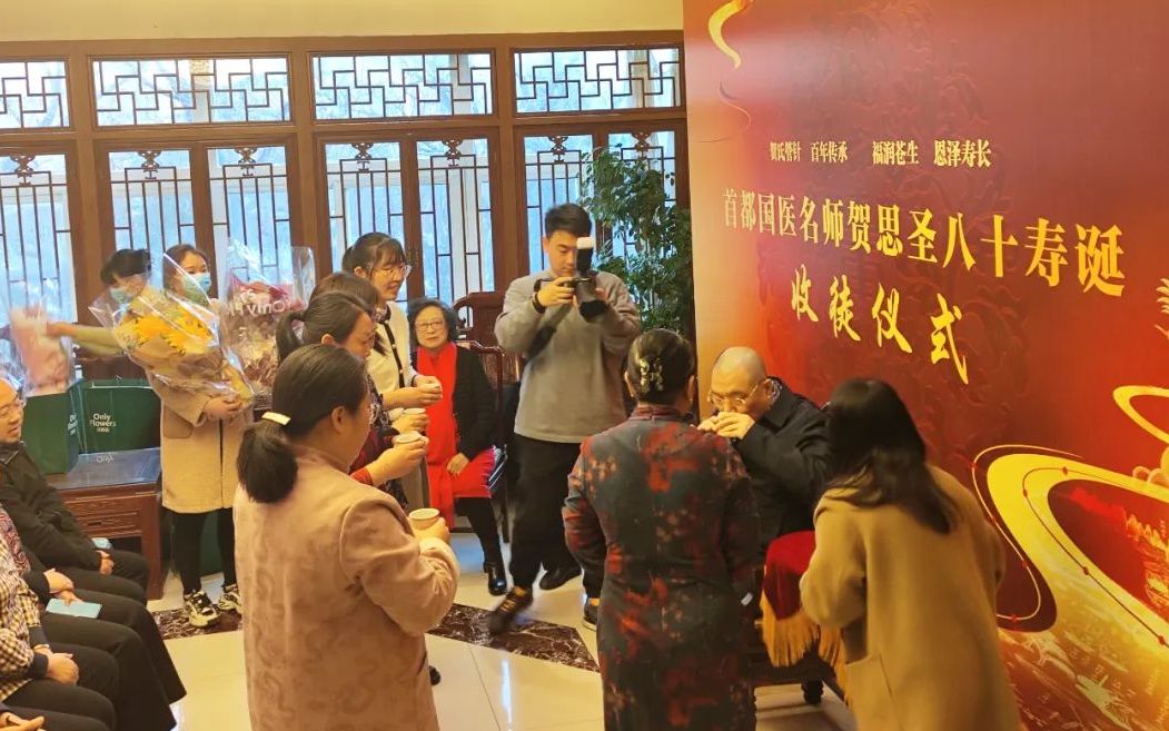 ▲ 北京針灸學會會長、首都國醫名師王麟鵬教授主持收徒儀式