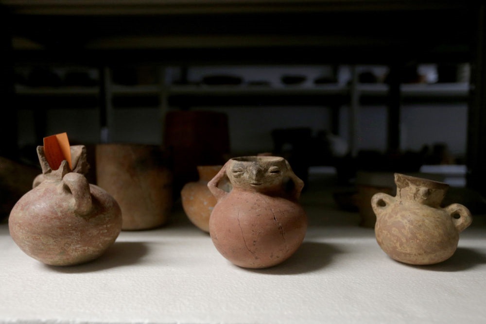 ??2023年6月8日,在洪都拉斯科潘瑪雅遺址國際考古隊倉庫內拍攝的陶器文物。