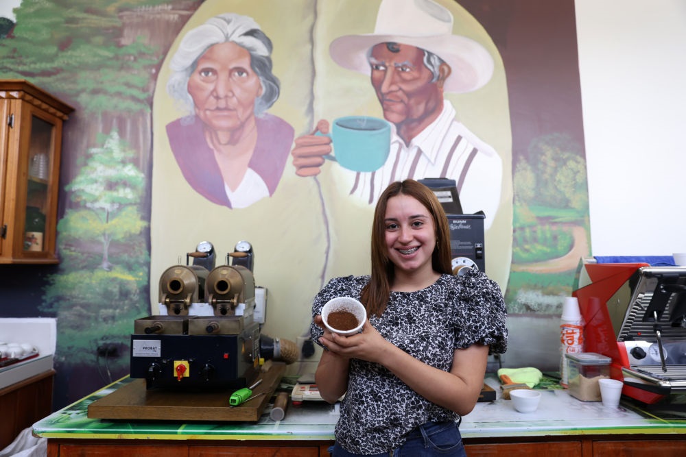 ??3月23日,在蓋坦咖啡坊,工作人員展示咖啡。