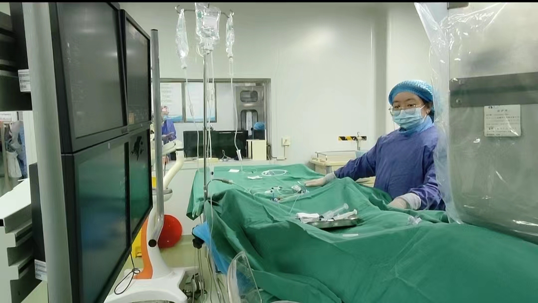 介入手術室,很多人提起它眼前就會浮現出“冰冷的器械”“繁雜的儀器”等景象,而人們不知道的是,這里有一群忘記時間、不停奔走的人,她(他)們用對生命的敬畏詮釋著職業的真諦,用對患者的熱情溫暖著手中的術具,她(他)們是介入科的醫生,是百姓健康與生命的衛士!
