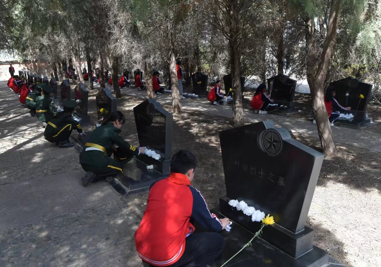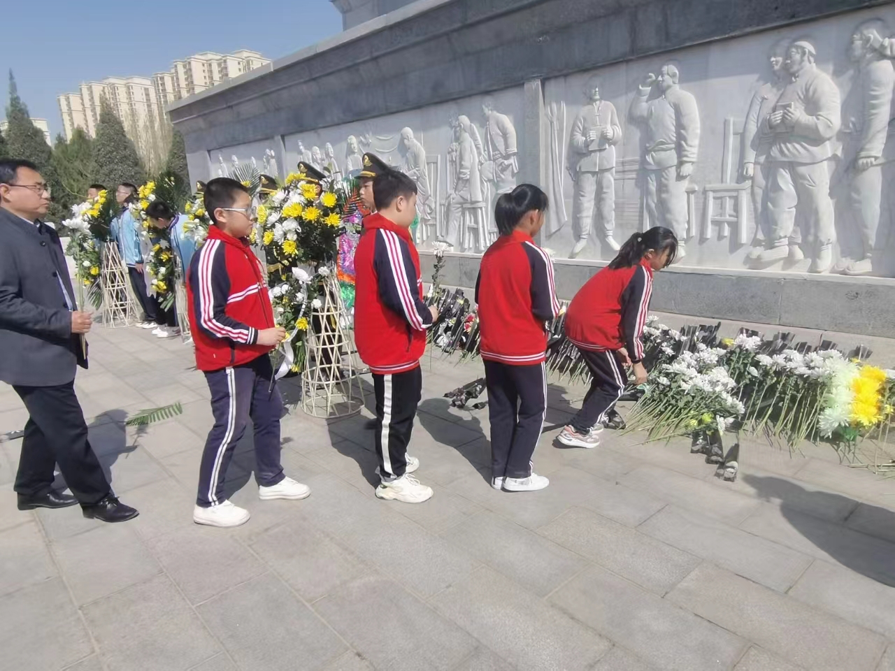 活動現場,學生們齊聲歌唱《中國少年先鋒隊隊歌》,歌聲嘹亮,回蕩在烈士陵園上空。走進革命烈士紀念堂,大家共同瞻仰先烈事跡,一幅幅生動的照片、一段段感人的文字都在訴說著革命先烈的感人故事。
