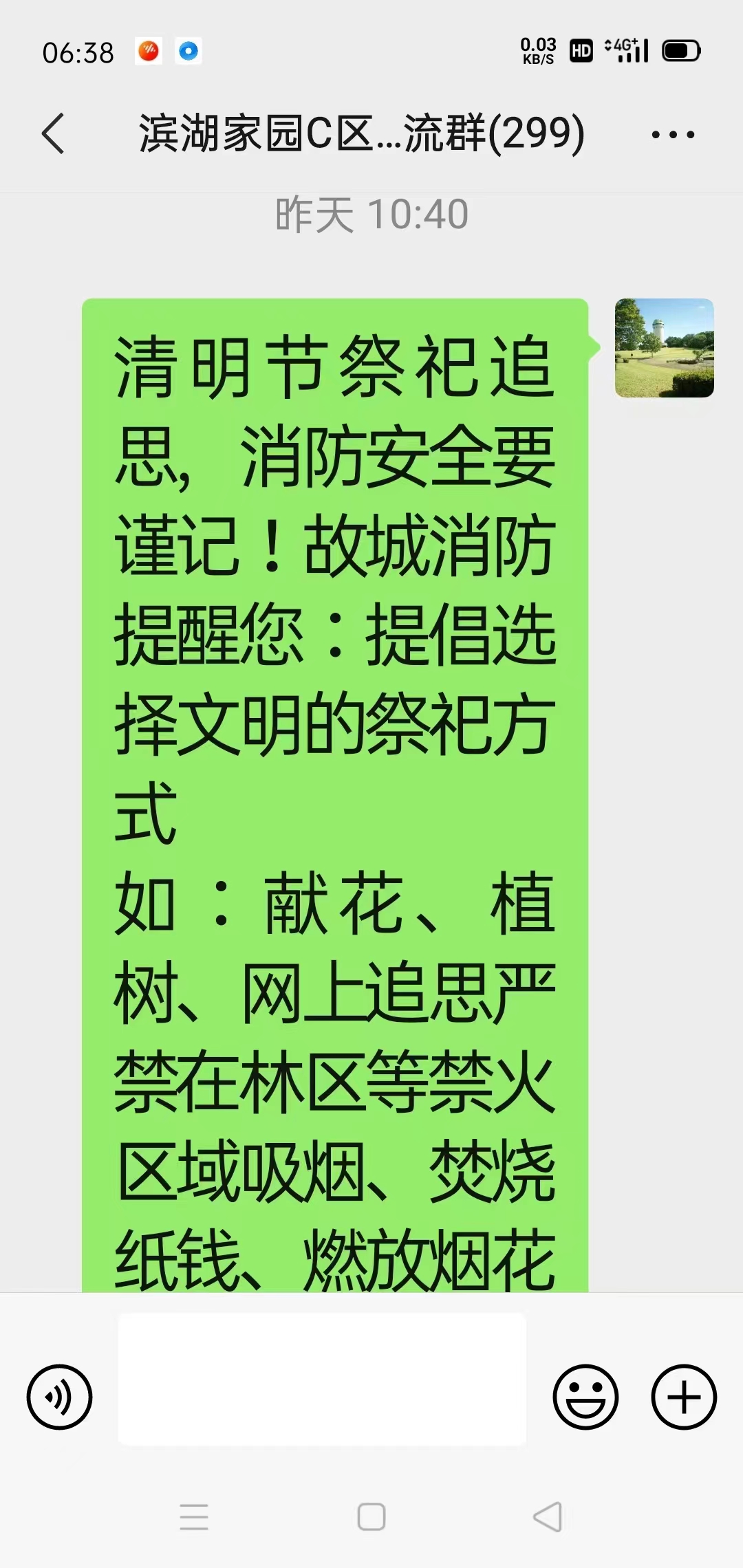 消防人員走村入戶有側重地為村民講解清明期間消防安全知識,教授如何處置野外初期火災,號召大家樹立“文明祭奠,環保祭掃”的意識。利用農村大喇叭的宣傳方式,播放清明節期間防火宣傳知識。聯合派出所向“九小場所”業主發放消防宣傳單,時時刻刻做到防患于未“燃”。利用小區物業微信群將“清明節”消防提示信息推送到居民手機上,提醒廣大群眾祭祖期間做好消防安全工作,加強火災防控。