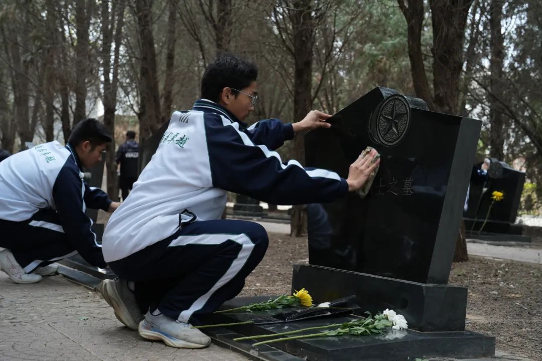 最后,同學們來到烈士墓前,擦拭墓碑,向先烈致以最崇高的敬意和追思。