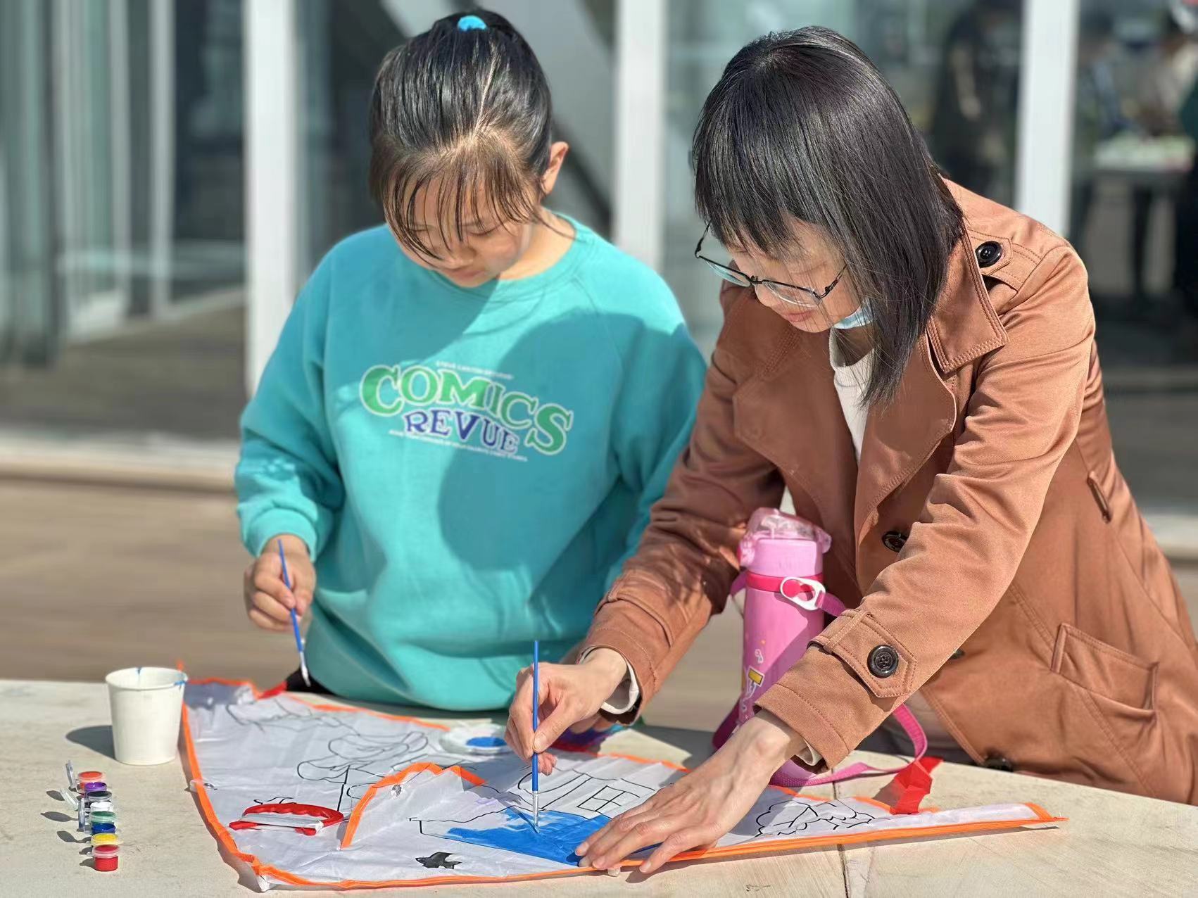 隨后小讀者們紛紛選擇自己喜歡的風箏圖案,爭先恐后地開始了創作。一只只空白的風箏被他們繪上美麗的圖案,五彩斑斕的童心世界在風箏上躍然而出。制作完成后,小讀者們與家長來到室外,在溫暖和煦的春風里,放飛自己精心繪制的風箏。五顏六色的風箏在空中飛翔,孩子們盡情地揮灑著歡笑與快樂。