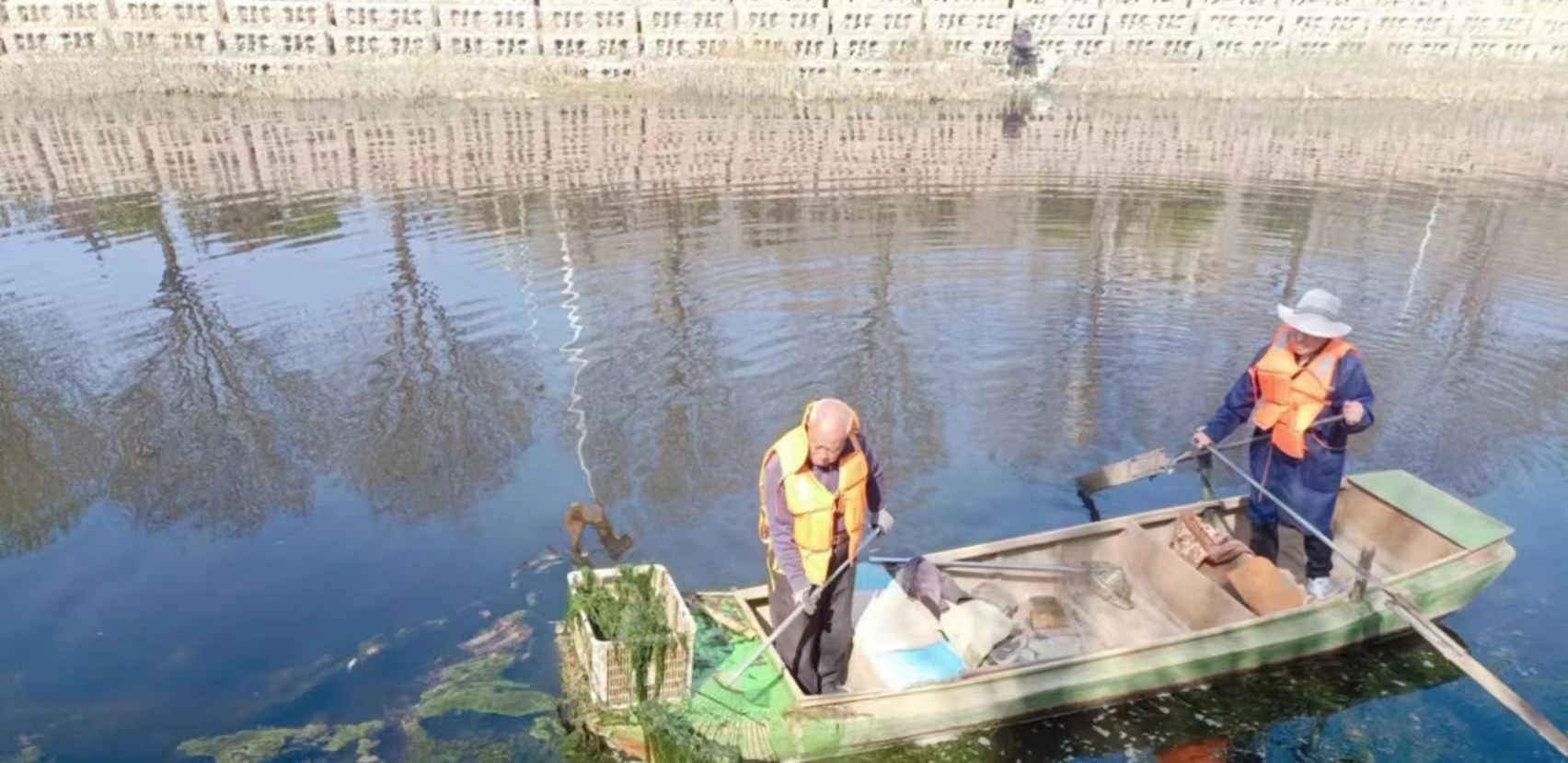 整治行動中,市環(huán)衛(wèi)中心環(huán)衛(wèi)工人對河道溝渠及河道兩岸的邊坡、道路及河灘的垃圾、枯枝敗葉、沿岸雜草等進行打撈,集中清理清運,全力提升河道及周邊環(huán)境“顏值”。在打撈過程中,采用人工和打撈船相結(jié)合的巡回作業(yè)模式,對境內(nèi)的河道水草進行打撈,將河道里的水草、雜草、浮萍等漂浮物一并打撈清理上岸。對河岸兩邊、死角易積存垃圾點位進行徹底清除,及時清掃撿拾岸邊垃圾,避免落入水中造成二次污染。對于河道等水面大面積雜草蔓延現(xiàn)象,一線作業(yè)人員利用打撈船對雜草進行切割清運,確保河道兩岸的環(huán)境得到顯著改善。