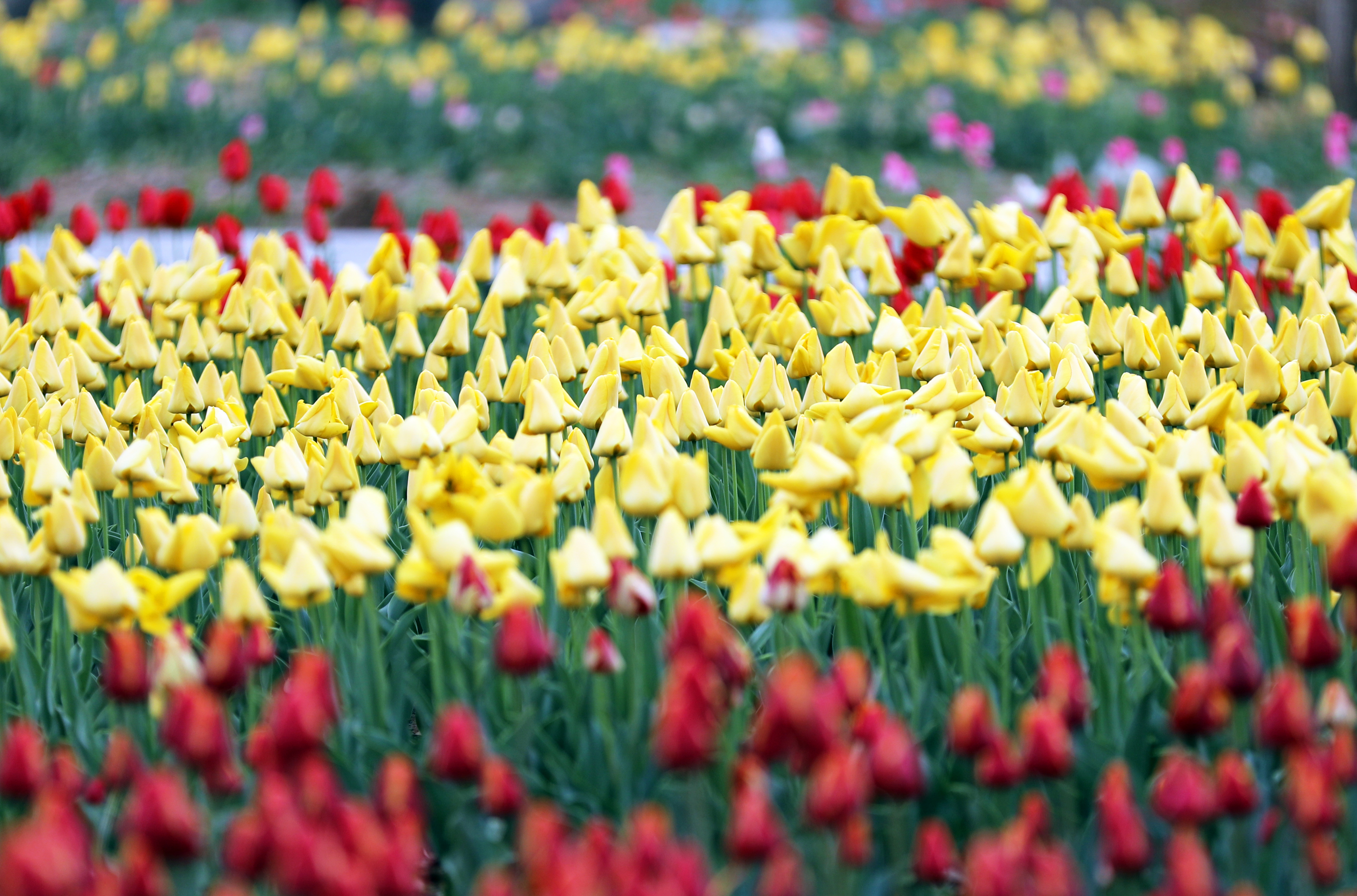 春光限定的浪漫,定格于郁金香。位于市區(qū)寶云公園內(nèi)的郁金香姿態(tài)多種多樣,有的花瓣已經(jīng)完全舒展開,散發(fā)出陣陣的清香;有的郁金香含苞待放,像是一支支飽含墨汁的毛筆……在這里,每一朵郁金香仿佛是大自然的精靈,用它們絢爛的色彩和優(yōu)雅的姿態(tài),訴說著春天的故事。一路走下來,除了能觀賞到郁金香,還有二月蘭、油菜花等各色鮮花也在爭(zhēng)相怒放。