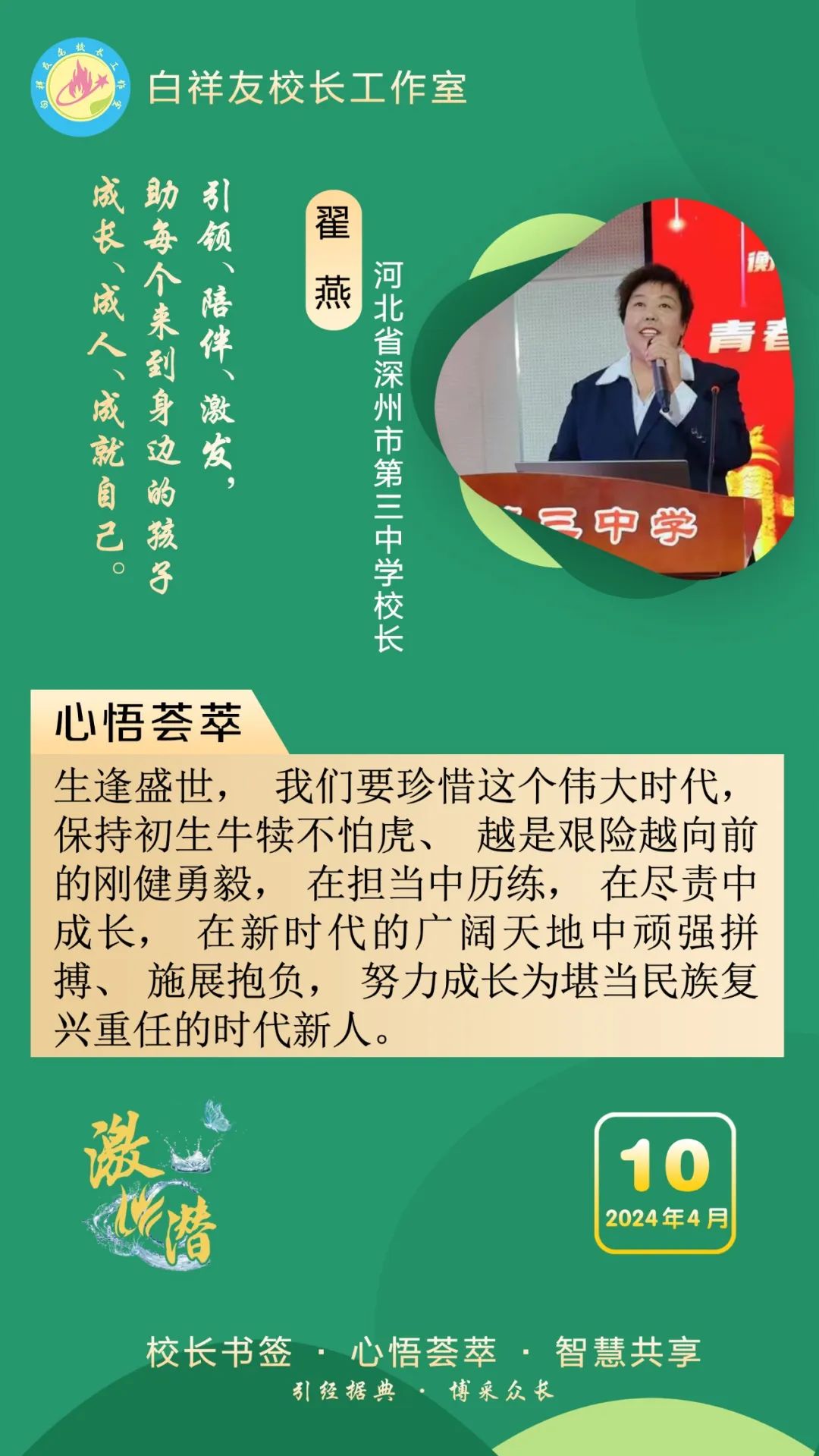“白祥友校長工作室”成立于2019年4月,是教育部“國培計劃”中小學名校長領航工程、河北省首批名校長工作室,目前省內外成員校20個。工作室堅持“資源共享、智慧共融、互助共贏”理念,已成為思想碰撞的交流場,資源共享的品牌站,成果展示的輻射源。