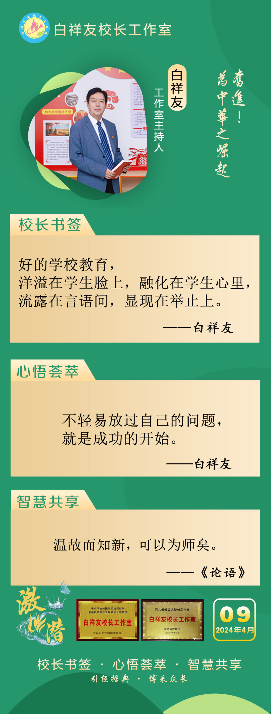 “白祥友校長(zhǎng)工作室”成立于2019年4月,是教育部“國(guó)培計(jì)劃”中小學(xué)名校長(zhǎng)領(lǐng)航工程、河北省首批名校長(zhǎng)工作室,目前省內(nèi)外成員校20個(gè)。工作室堅(jiān)持“資源共享、智慧共融、互助共贏”理念,已成為思想碰撞的交流場(chǎng),資源共享的品牌站,成果展示的輻射源。