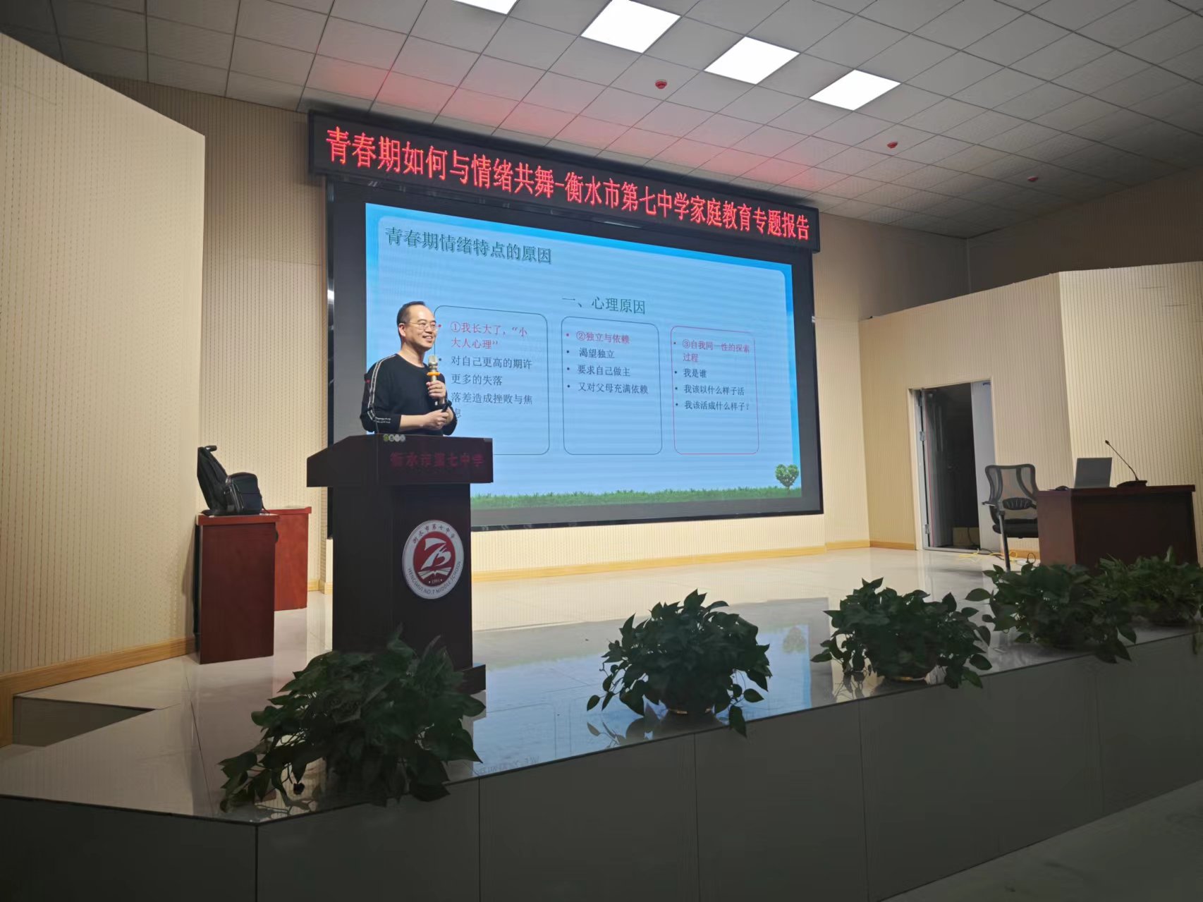 “孩子們,情緒沒有對錯,不能壓抑,我們要學會用正確的方式,讓情緒更好的流淌出來。”4月11日,衡水市第七中學多媒體會議室中掌聲雷動,一場別開生面的家庭教育專題報告會正如火如荼地進行。此次報告會旨在幫助初一、初二的師生及家長更好地理解和應對青春期的挑戰,吸引了線上線下共1000多人熱情參與。