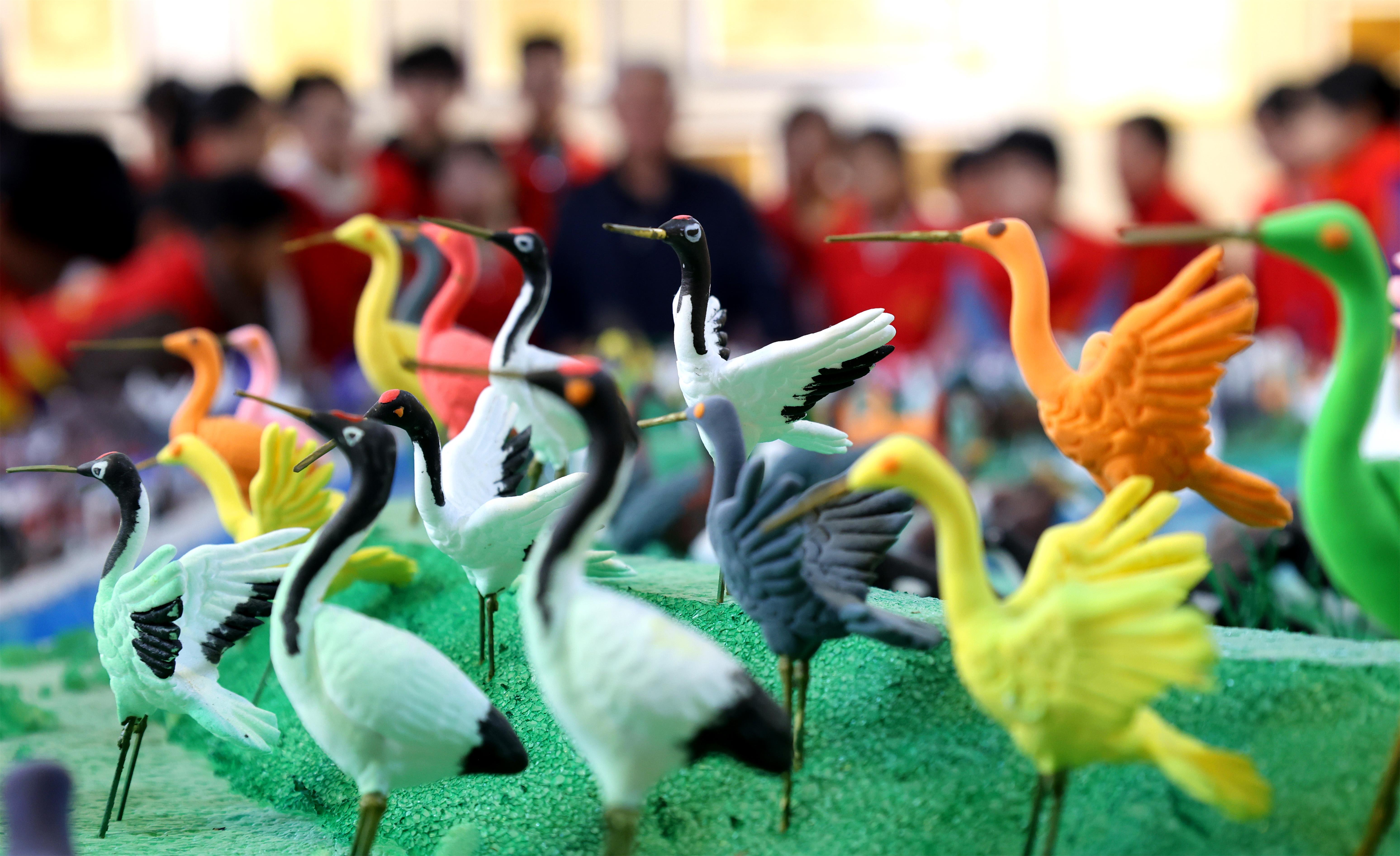 隨后,李學(xué)芳圍繞鳥的分類、鳥類對于人類的貢獻(xiàn)、保護(hù)鳥類等幾個(gè)方面為大家上了一堂生動(dòng)有趣的鳥類科普課。接著,他拿出輕黏土,現(xiàn)場捏制鳥,經(jīng)過揉、捏、搓等工序,不到5分鐘,一只活靈活現(xiàn)的白色丹頂鶴就呈現(xiàn)在大家眼前。