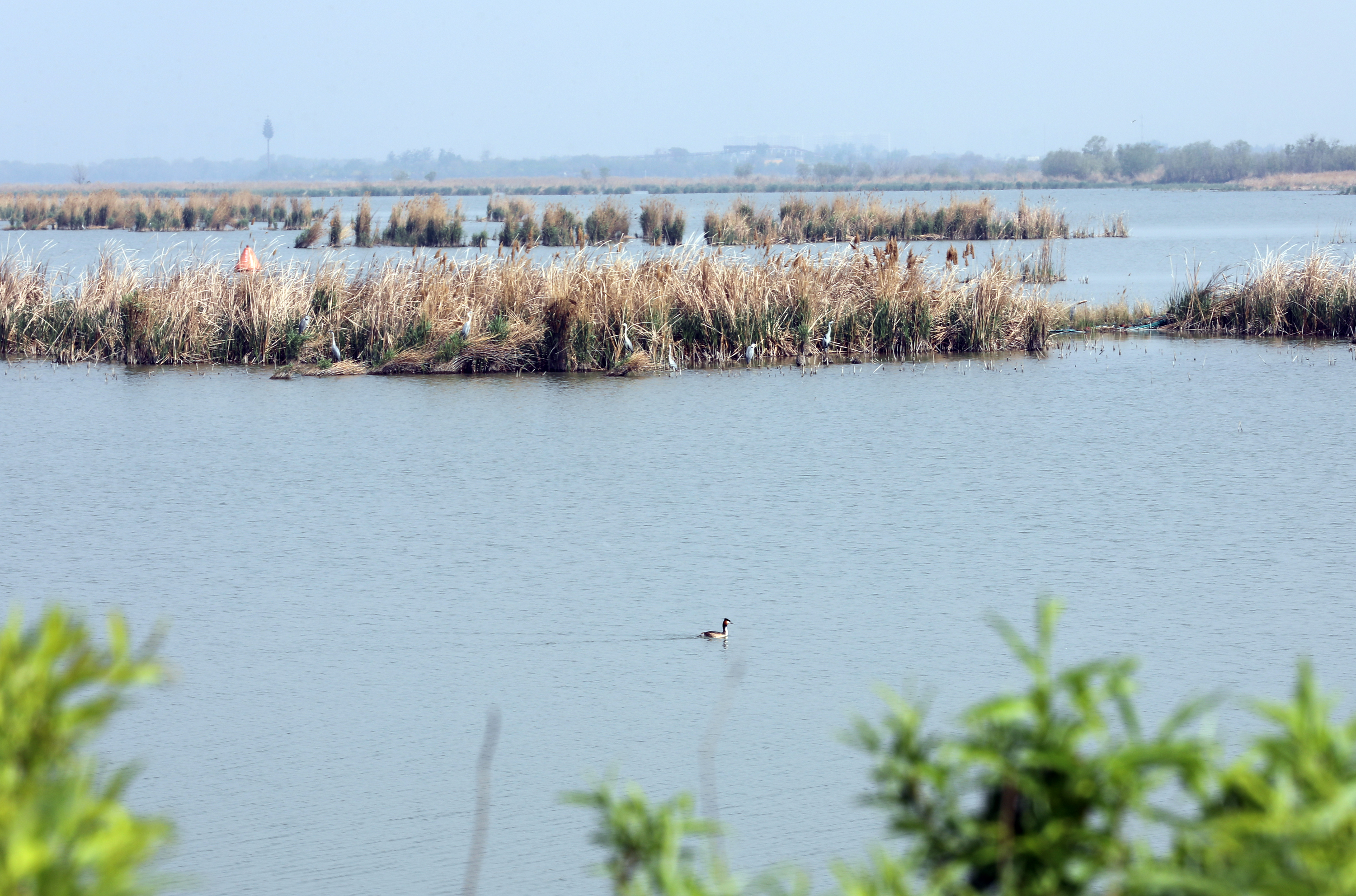 20多分鐘,鐺鐺車抵達小湖隔堤處,沿著步行道前行,映入眼簾的是一片片水域和蘆葦叢。和煦的陽光灑在碧波蕩漾的湖面上,三三兩兩不同的鳥類或在空中盤旋,或嬉戲游弋,呈現出勃勃生機與活力。攝影愛好者們不停地按下快門,將生動畫面定格在相機里。攝影愛好者張先生是第一次來到小湖隔堤,“太美了!比我想象中的畫面要豐富。”張先生表示,這次活動能夠近距離觀看鳥兒棲息,不僅實地感受到衡水湖之美,還直觀地認識到了保護生態環境的重要性。
